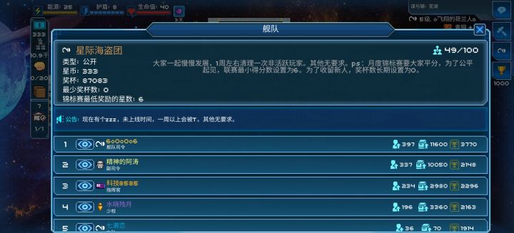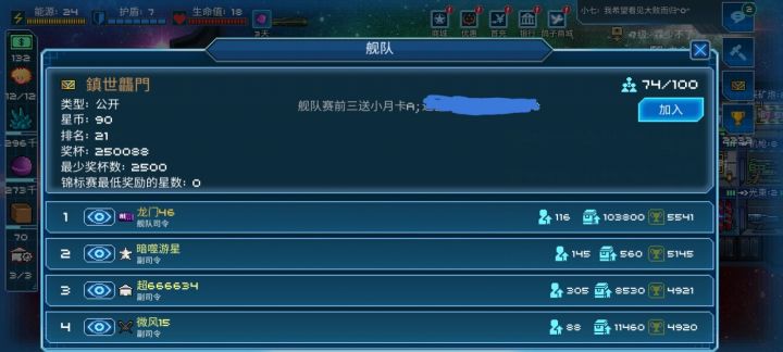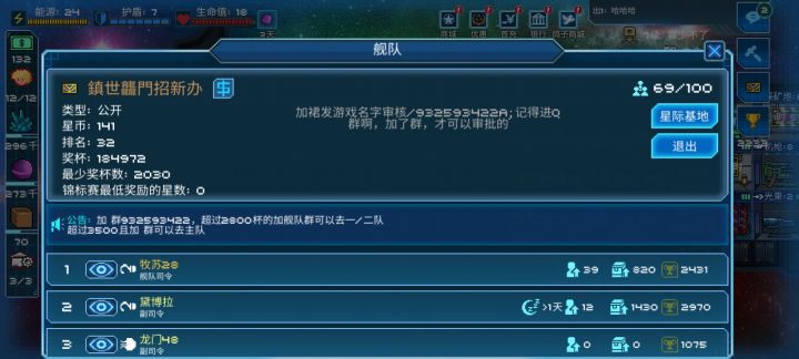 主队2500奖杯可进,舰队排名21#一号舰队2800奖杯可进二号舰队4200奖杯可进招新办2030奖杯可进有意者进Q群932593422审核群内有教程,养成攻略,AI教程,成品AI,打鱼jio本男娘群主,男娘管理!#游戏种草计划#游戏讨论
