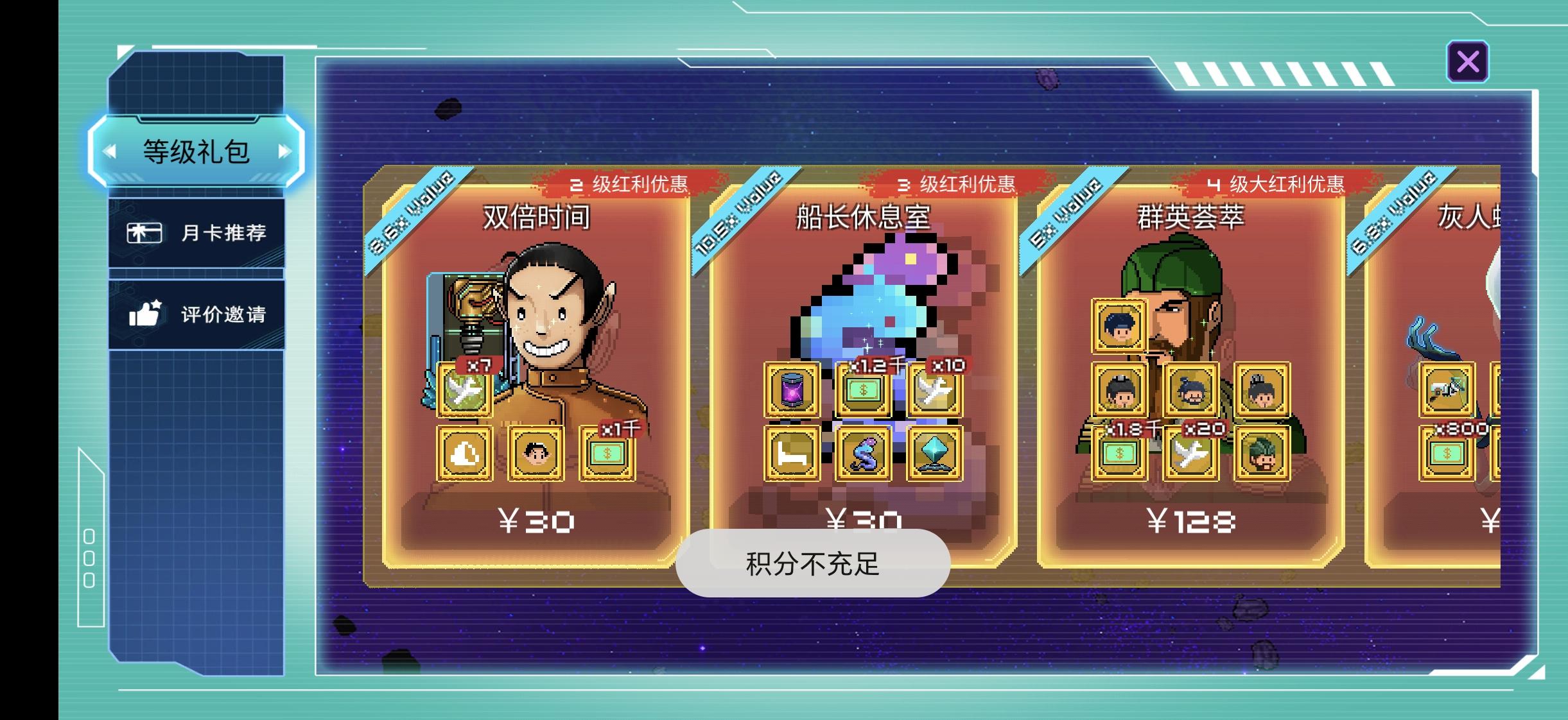 官方能开个积分充值或者组合付款通道吗?如图,没有280积分以下的商品,测试服充的22块钱浪费了,希望照顾一下氪金老玩家。
