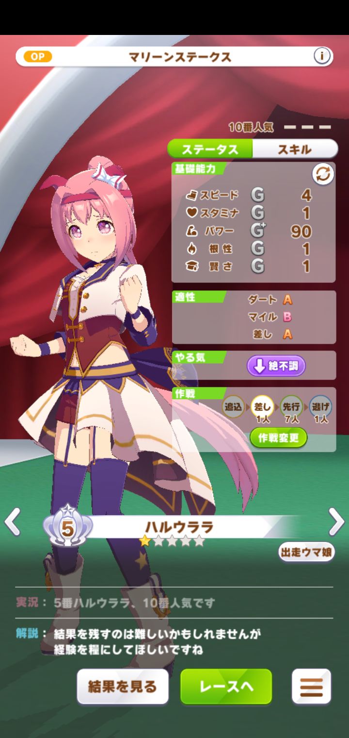 是BUG还是Haru在日常比赛中有100%的失利率。我不明白一匹C+马怎么会输给一群G+马