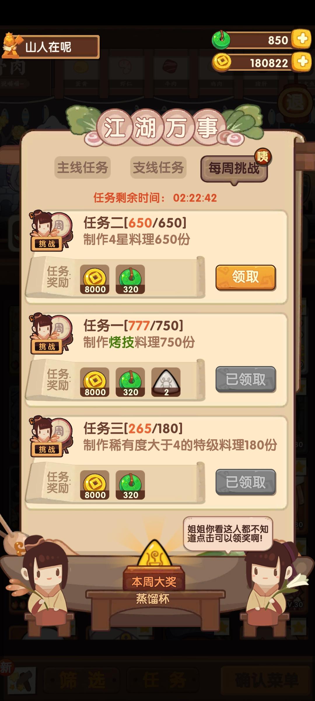 发现问题改了没事了,也不是什么大事,但是这么整感觉你官方真的很不走心,官方在微博称谋划了好几个月,之前几个池子菜真的不太走心。希望这次池子是个强池,也希望是你官方真正的去“好好对待”的一个活动,我厨神稳定高保开始竟然一直靠的是繁花的菊花鱼和菊花养生锅,现在都快一年了,再来一个池子就是周年了,大部分高保竟然还是靠它俩,回顾前几个池子,我印象用的最多的也就是鳕鱼堡,鱼籽酱,酸菜白肉不过仙丹确实开始有点退环境了,这个池子里的“红皮仙丹”也就是荔枝虾球未来可期,这周厨神表现非常不错,希望未来厨神我会经常用到它