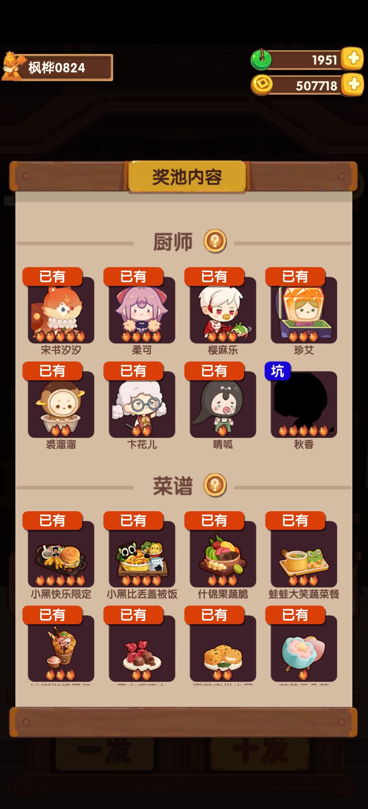 悲剧了 BC一直不出咖喱饺,小号支线任务卡了一年?.....今天又去捞BC,结果出了猫咪天堂......😂😂😂😂😂 就是说 池子有沉底很正常,能理解,但是主线支线需要的菜谱,能不能给个保底或者其他渠道获得啊......😅😅😅😅😅 这样漫无目标的抽啥时候才能清支线啊......
