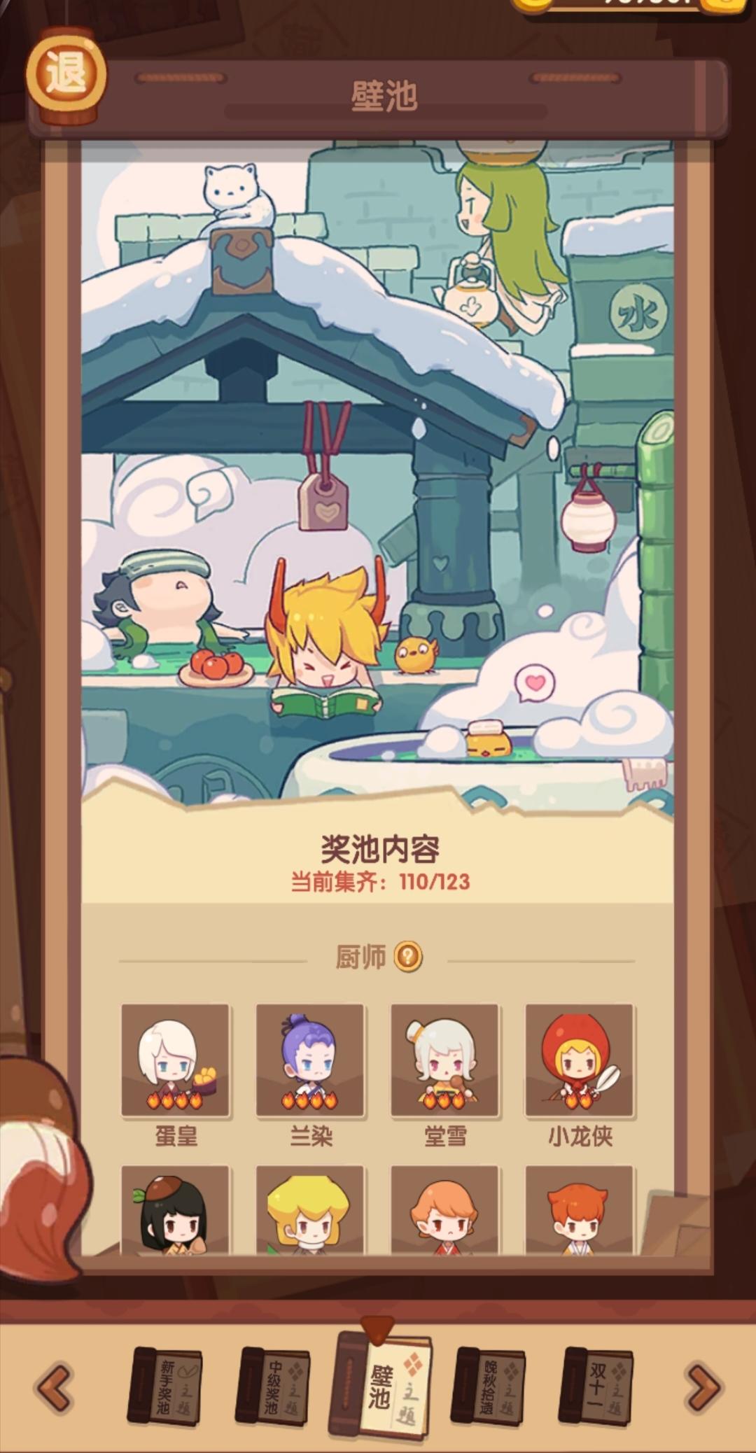 中级池就剩一个木碗(一火厨具)死活不出,收集度到101之后林林总总投了至少20次百连,还是没出,就是说沉了吗?碧池的龙井和东坡肉也沉了,因为猫咪天堂出了•᷄ࡇ•᷅ •᷄ࡇ•᷅ •᷄ࡇ•᷅