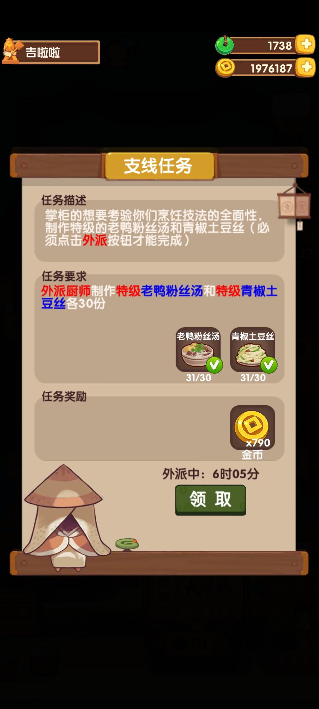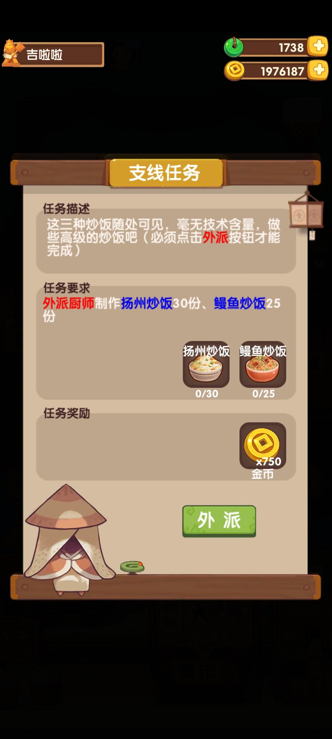话说这是不是bug啊?第一个支线并没有要到扬州炒饭,但是我想做另一个支线的时候写着扬州炒饭外派中😨