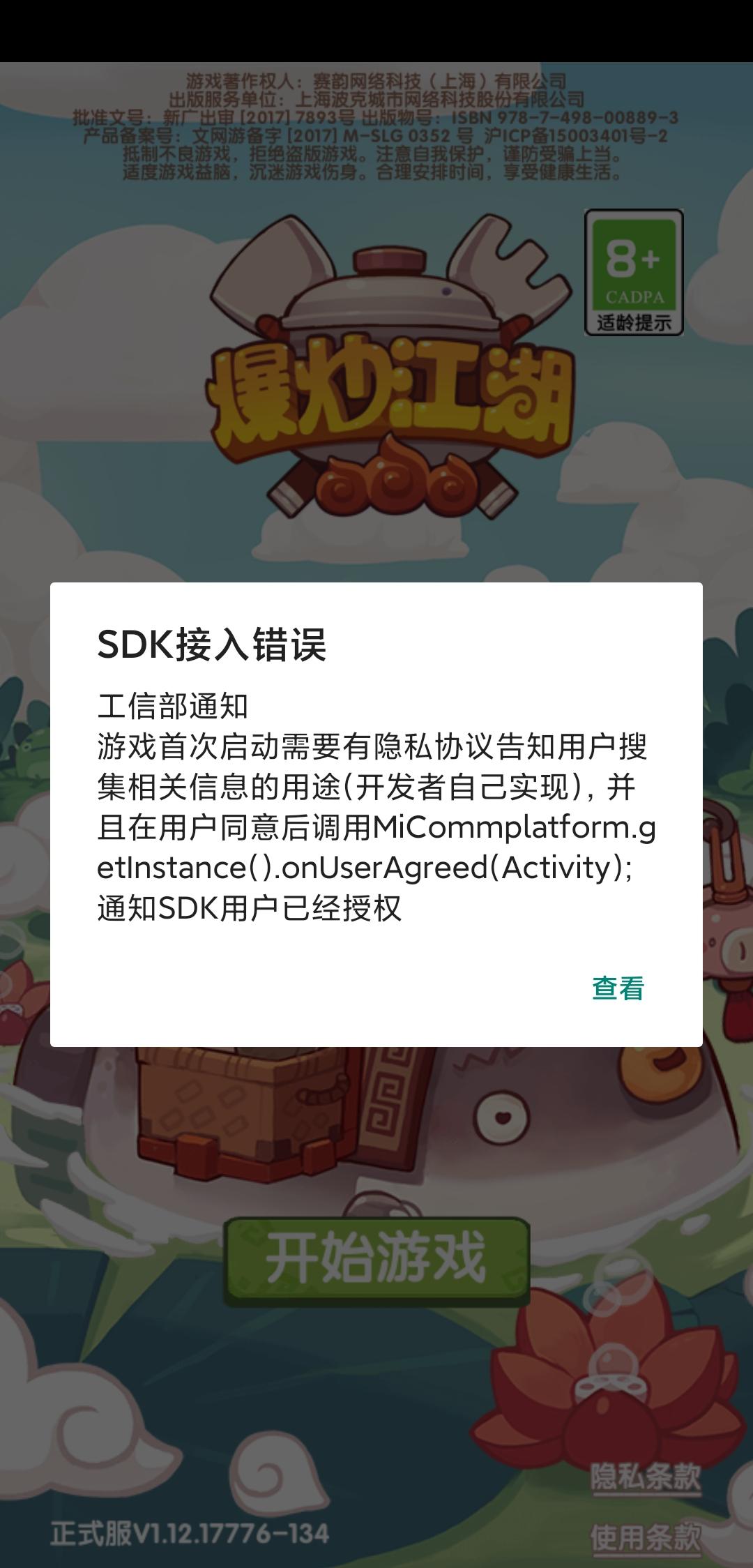 今天更新后,小米渠道服没有弹出错误代码了。然鹅,偶尔从后台调游戏出来时,直接给我闪退重启了。差点把我的腰折了。