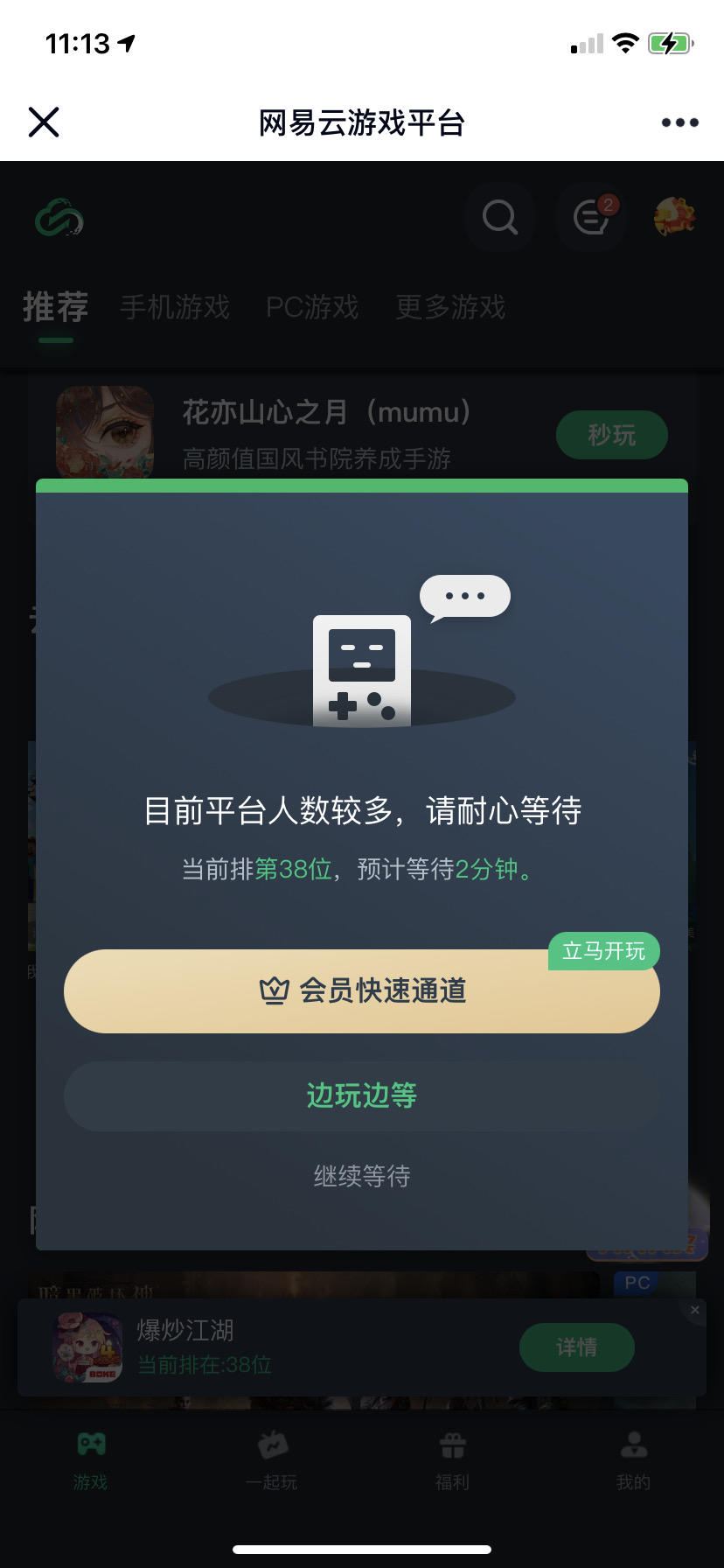 Ios玩家心里苦…这不是逼我们买网易云游戏会员吗…玩了一年多了,可能真的要弃游了官方云游戏也很卡,相对来说网易还稳定一点。而且爆炒免费只到29号,后面好像每天限时一个小时,然后就要买会员了哎,真的好难而且排队错过一分钟,又得重新排队…只能一直盯着排队界面