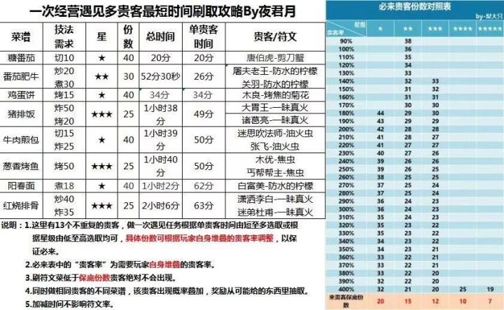 11.27更新蓝兔的出现,食材效率最高的配队更新了月仪蓝兔+礼盒关羽+飞星技法没问题,蓝兔有炸有烤有蒸可以用具体配菜等有空研究……………………………………………………………8.21更新补了几道漏掉的符文菜,修改了一些错误## 食用前须知 ## 1. 众所周知,飞星队需要一定量的基修支持和菜谱储备,这也是不推荐新主厨们使用的根本原因,因为使用限制和使用成本相比老主厨们要大得多2.