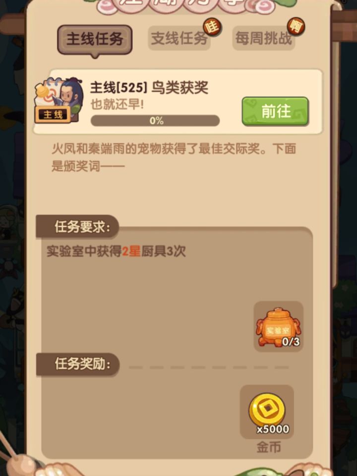 求助各位大佬!这个主线525鸟类获奖到底该怎么过呀!!!实验室里面缺少的厨具在哪里获得呢?在线等很急呜呜#爆炒江湖