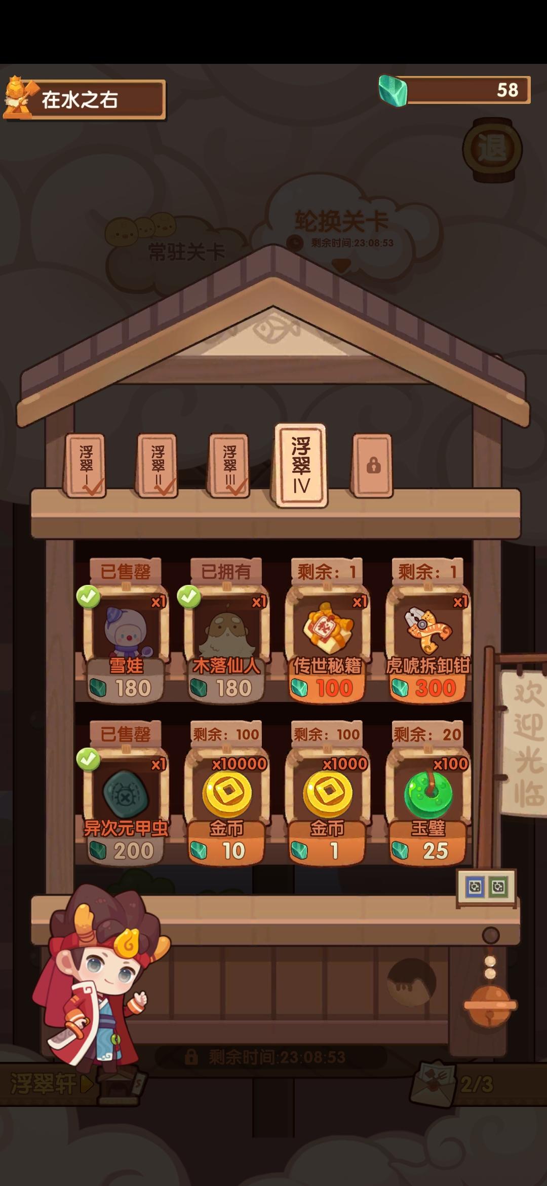 很好奇啊,这一次的活动商店能掏空吗。每天一张邀请函,最多获得60浮翠,加上每天免费的5个,轮换关卡还剩三个,最多540,合起来掏空第4个商店都难,那么要开第5个商店是一定要氪金吗