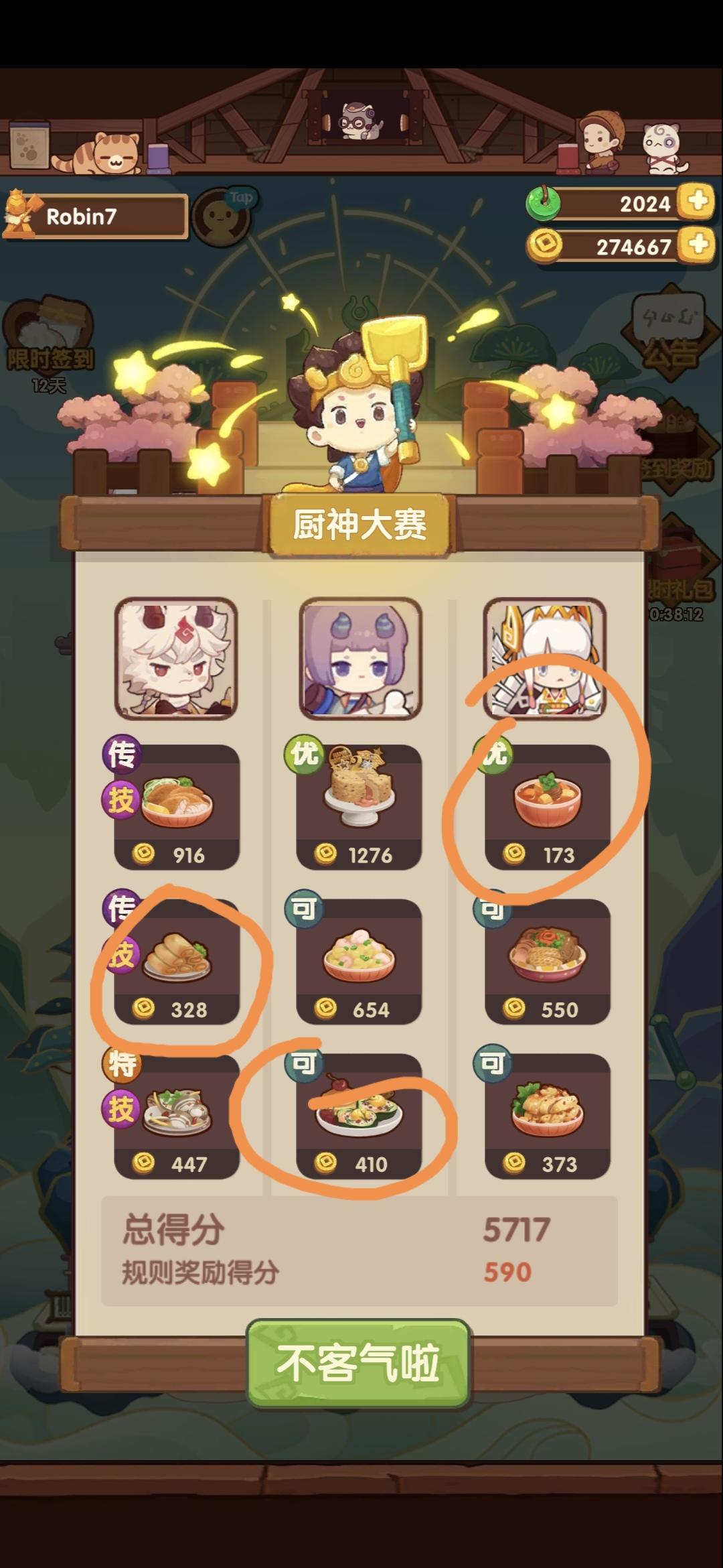 大佬们,为什么白菜菊花和厨神算的分数不同呀,难道厨神的额外分数奖励只能触发一次