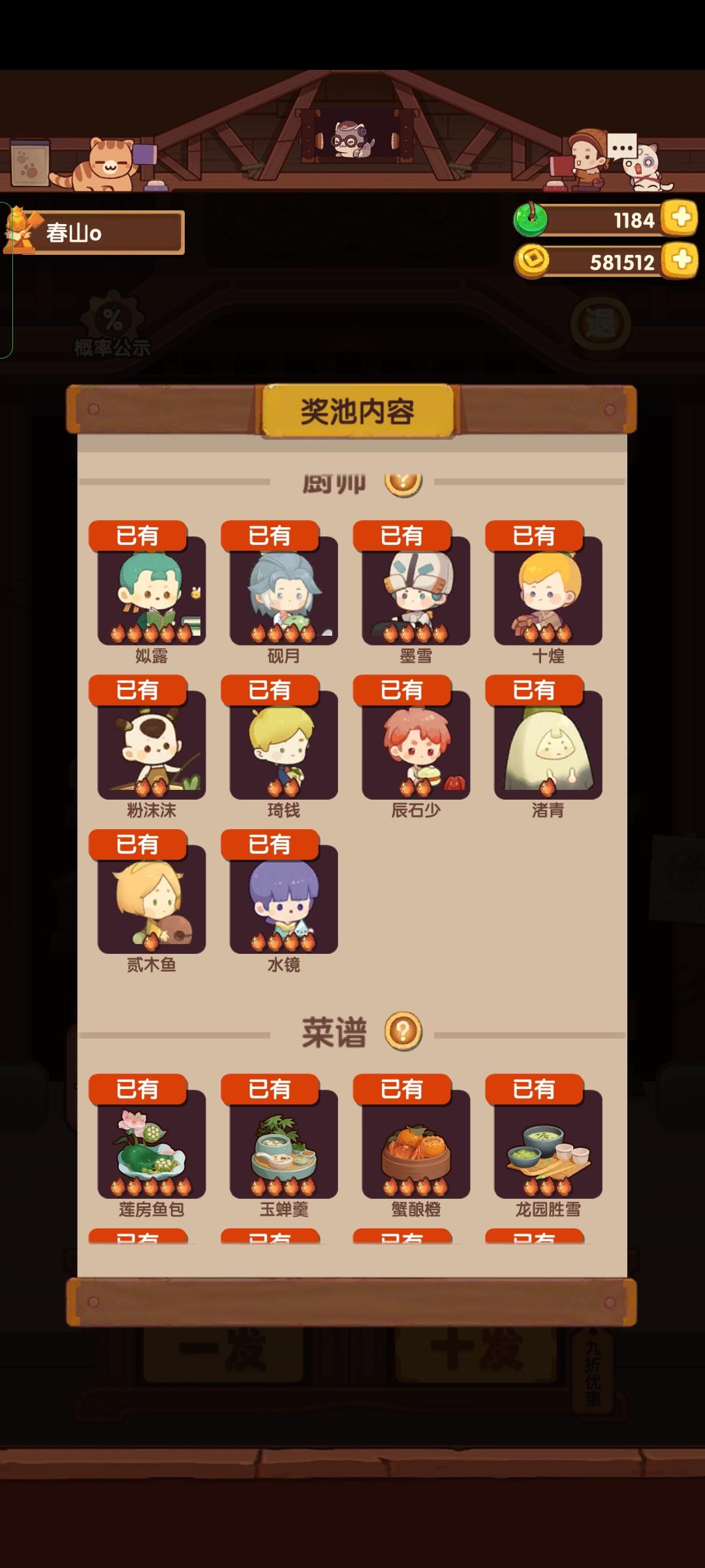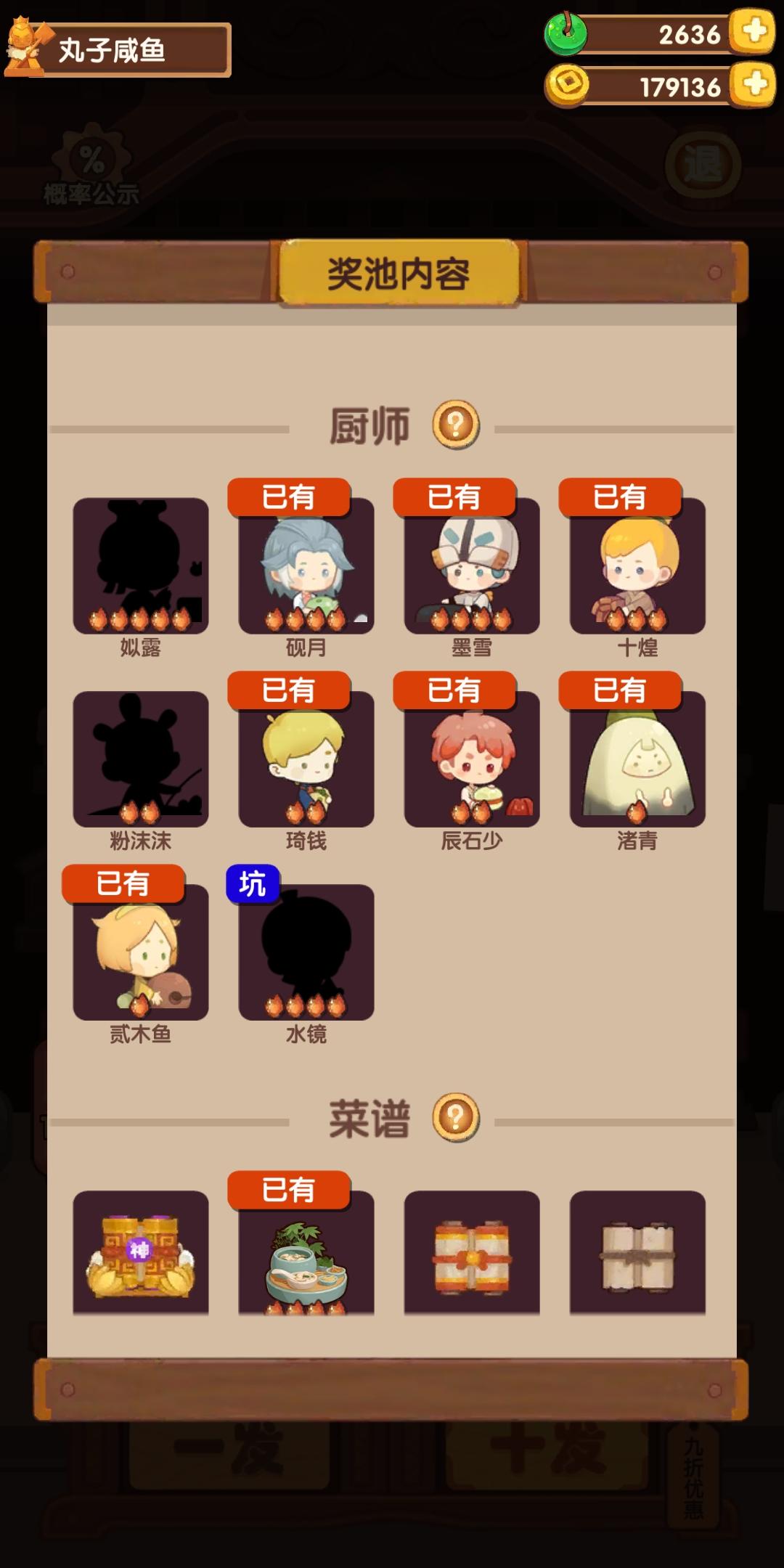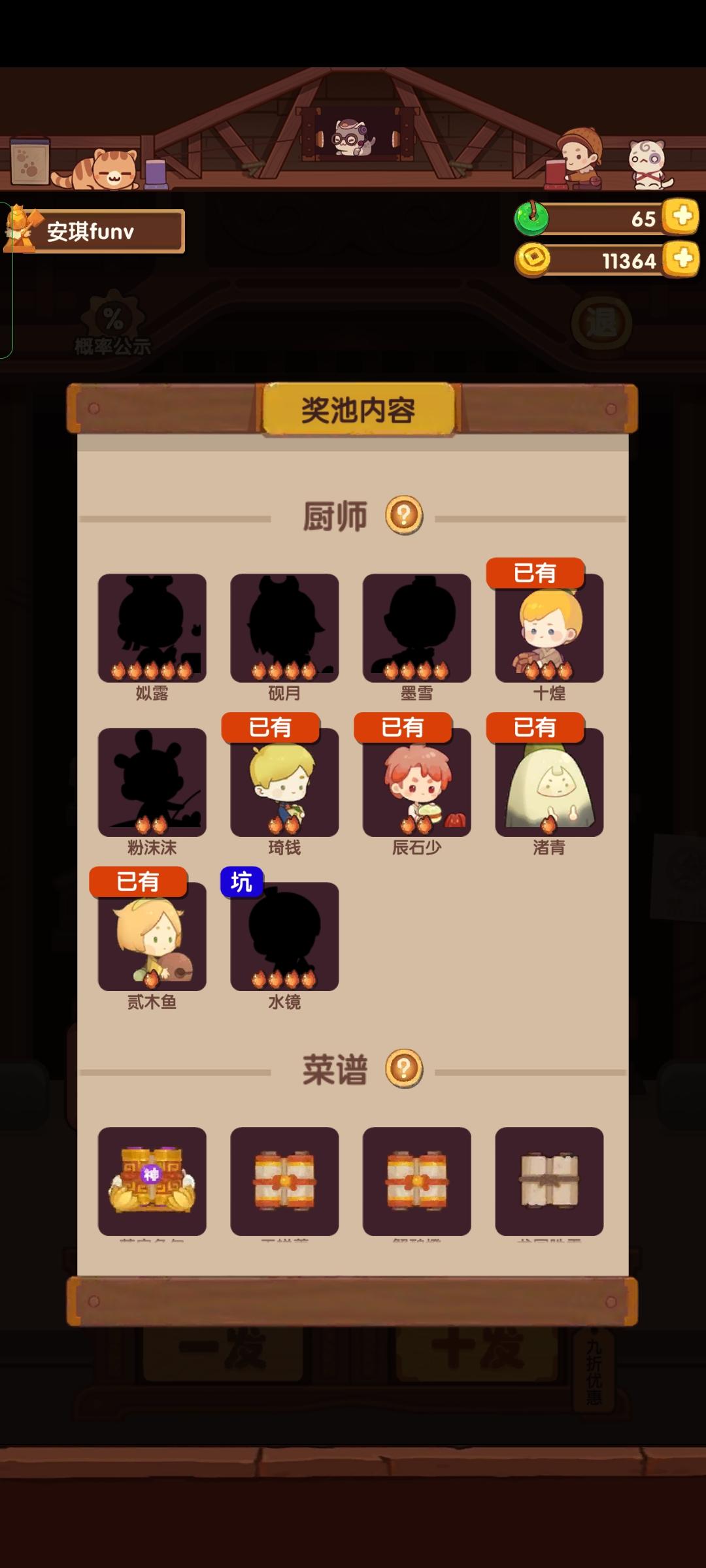 萌新想问问,抽不出菜谱是正常情况吗刚玩了二十来天,新池子抽了应该有2w玉壁左右,厨师和装饰都出了一大半了,但是菜谱一个都没有,想问问这种情况很常见吗
