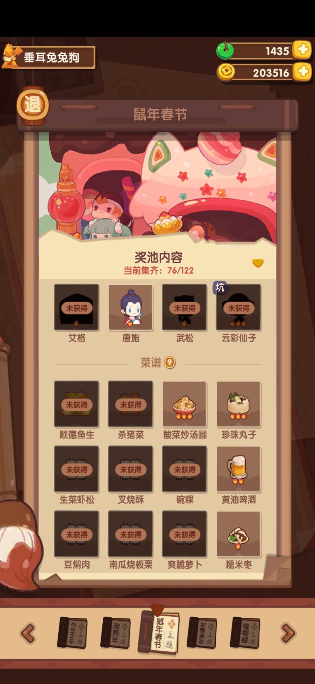 目前抽完新池,剩下大概2万玉左右,在周年庆结束前应该可以补一个池。目前十分没有杯子菜,想抽荊楚的清蒸武昌鱼。但又想抽桃花池,捞九转大肠来修苍杳女。求教各位大神,先抽哪个比较好?