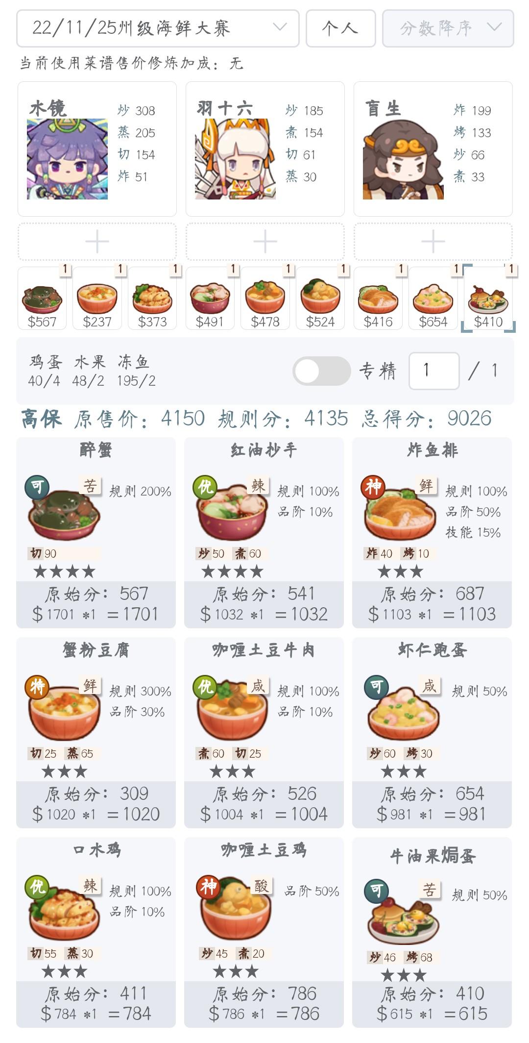 试了一下午一晚上了,参照了群里和论坛的其他作业怎么也凑不够煎饼用了象牙筷 黑柏用了金斩骨刀 柔可用了金烤叉