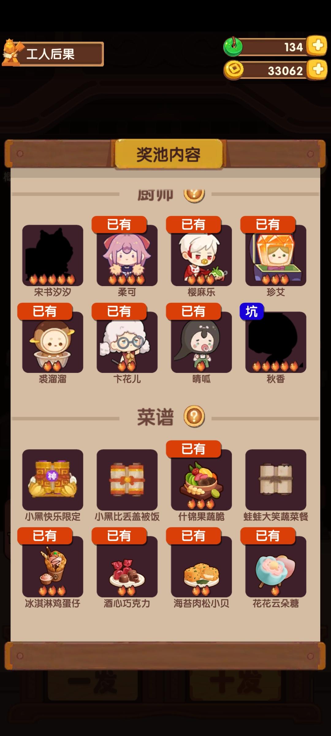 新卡池,下面的厨具装饰都抽满了,但是这个厨子和菜谱真抽不出来啊……要不要继续抽?大佬们求解