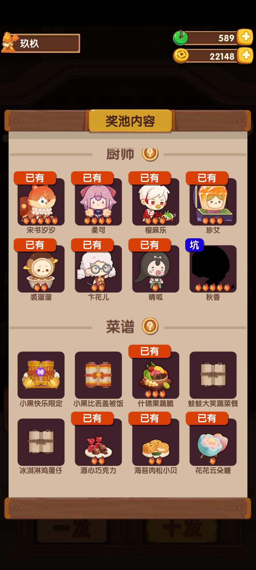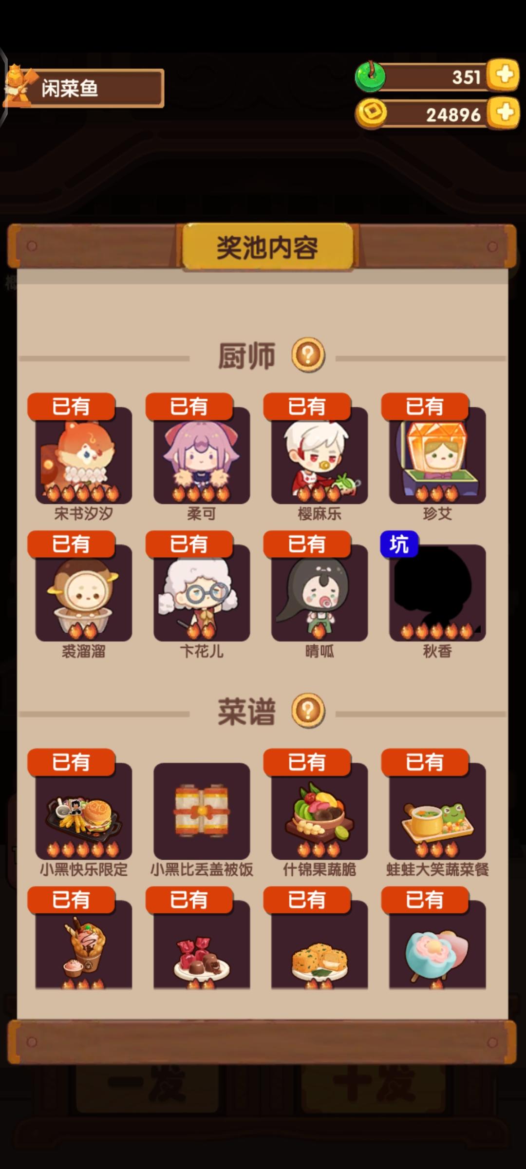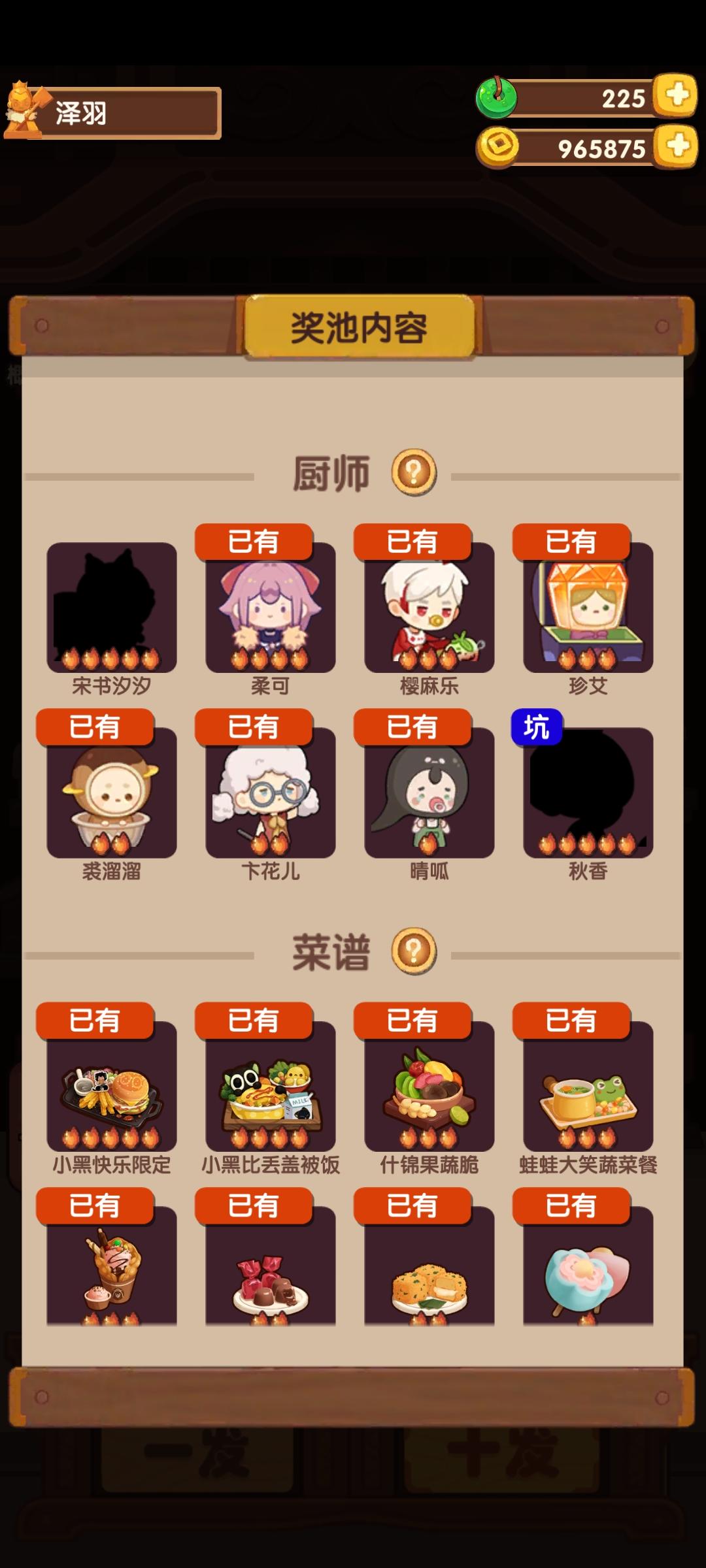 问问各位大佬还有抽的必要吗?是萌新玉不多,抽了将近2w玉,厨具装修都出完了,只剩下坑和这几个菜品了。该存玉等下个池子还是接着抽呢?
