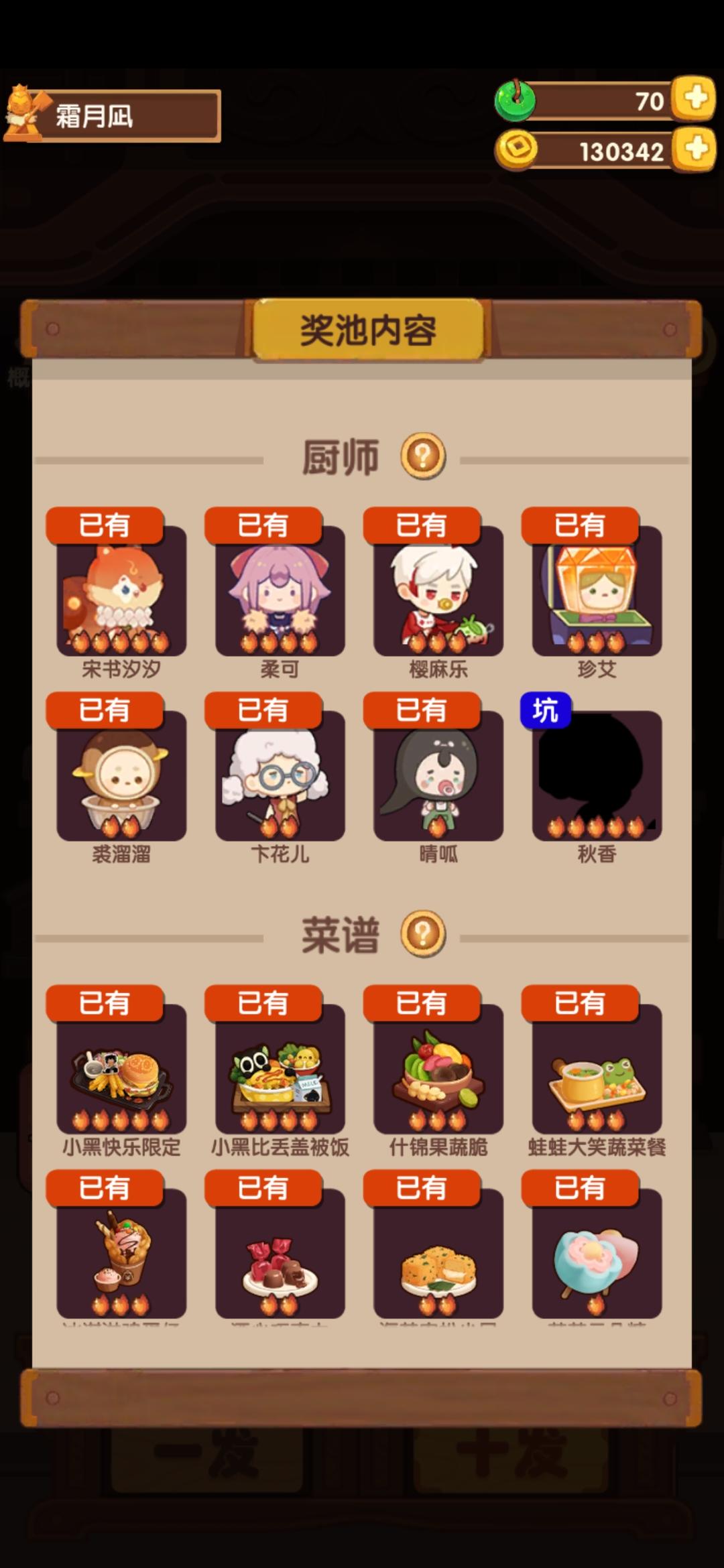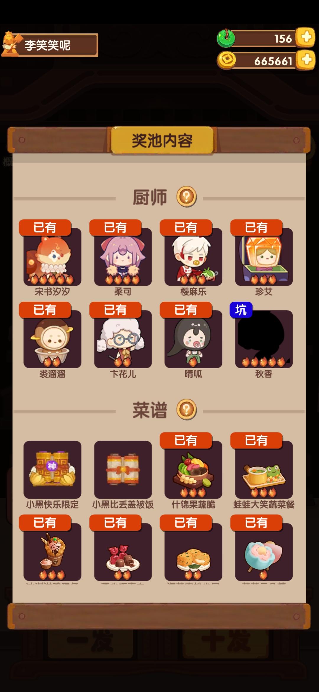 萌新不懂就问:我已经很久没抽到厨子了,写着“坑”字的秋香是否终会抽到?😂