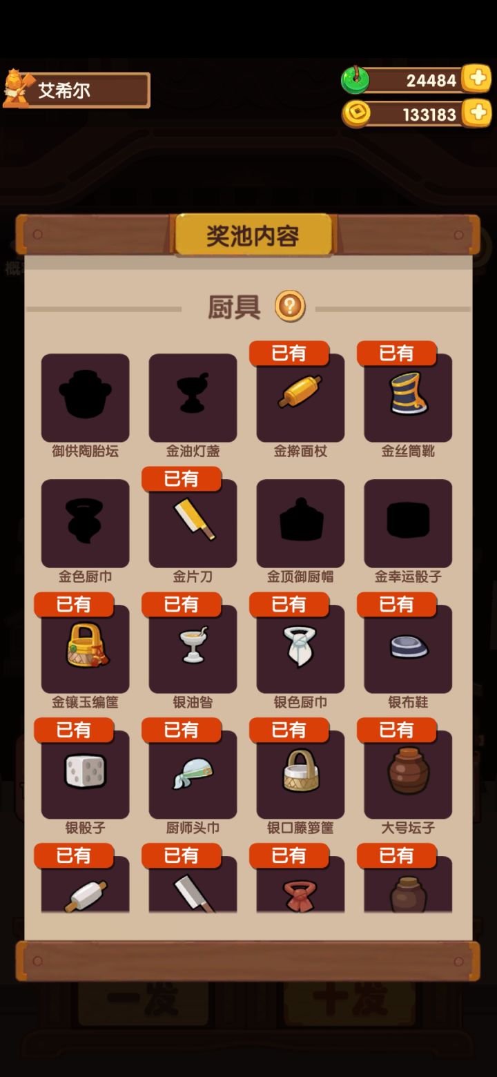 就差两个菜和几个厨具没出了,抽复刻还是把碧池抽完呀或者是继续攒着