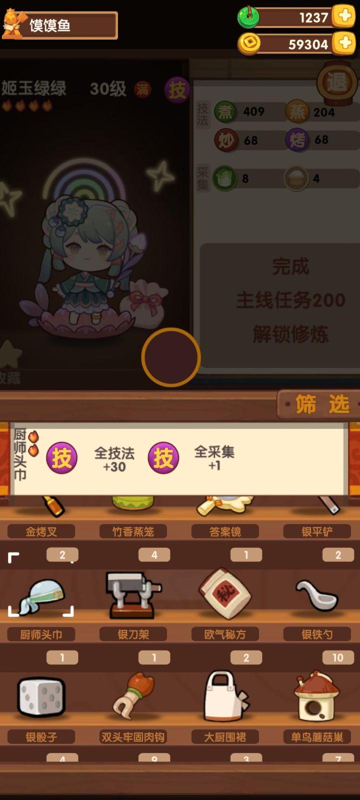 新人求助!姬玉绿绿装个厨师头巾怎么样?装上好像有机会冲这次郡级第一,采集+1正好也用得上