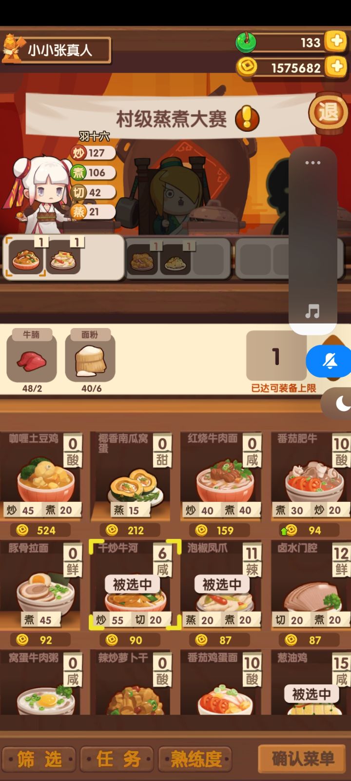 我是萌新,第一次参加厨神大赛,为啥我材料够,都只能做一道菜啊