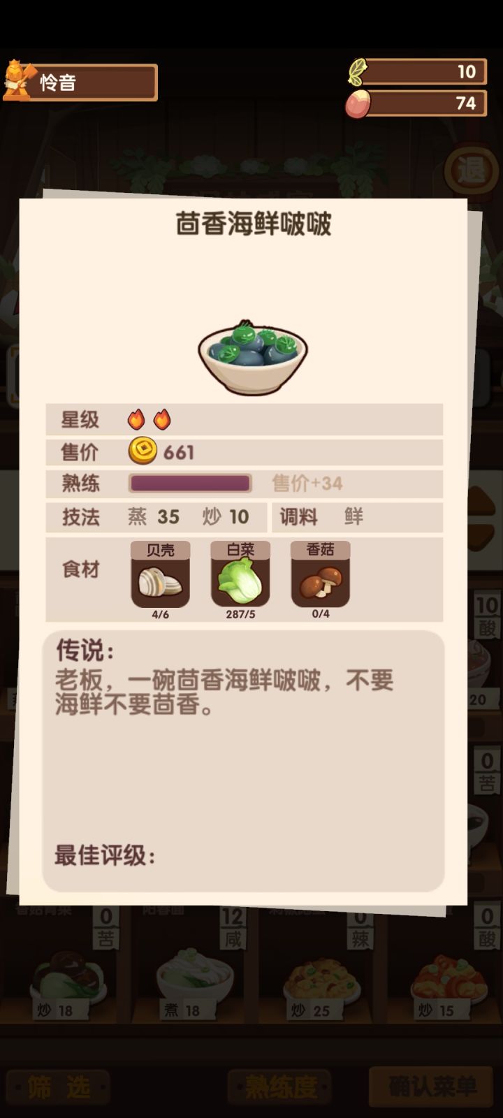 这活动新手怎么玩。。。。第一个菜谱没有贝壳。。。。第二个菜谱没有厨子技法达标。。。