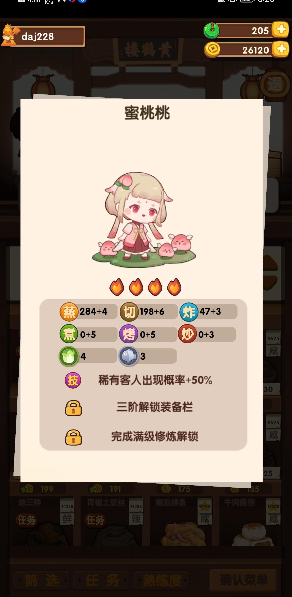 请问怎么调整白菜菊花里厨师的数据啊?我才二阶,计算器里是满阶😥