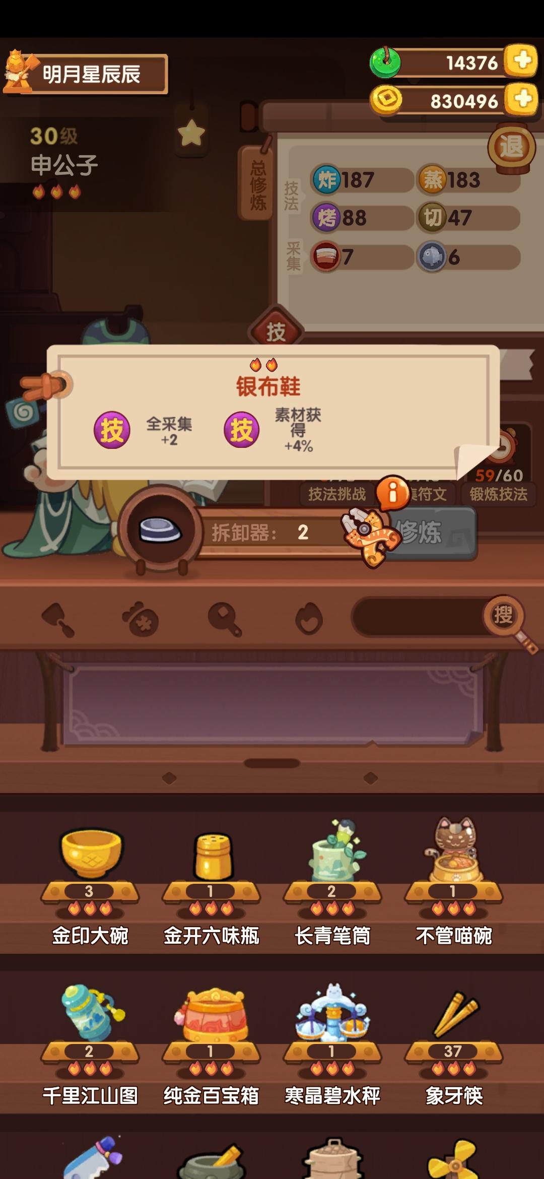 我想给申公子修炼,但是要用蒸的厨具才能修炼由于我是回归玩家我也忘了怎么没修练就给他上了银布鞋,现在纠结这个银布鞋值不值得一个拆卸钳子