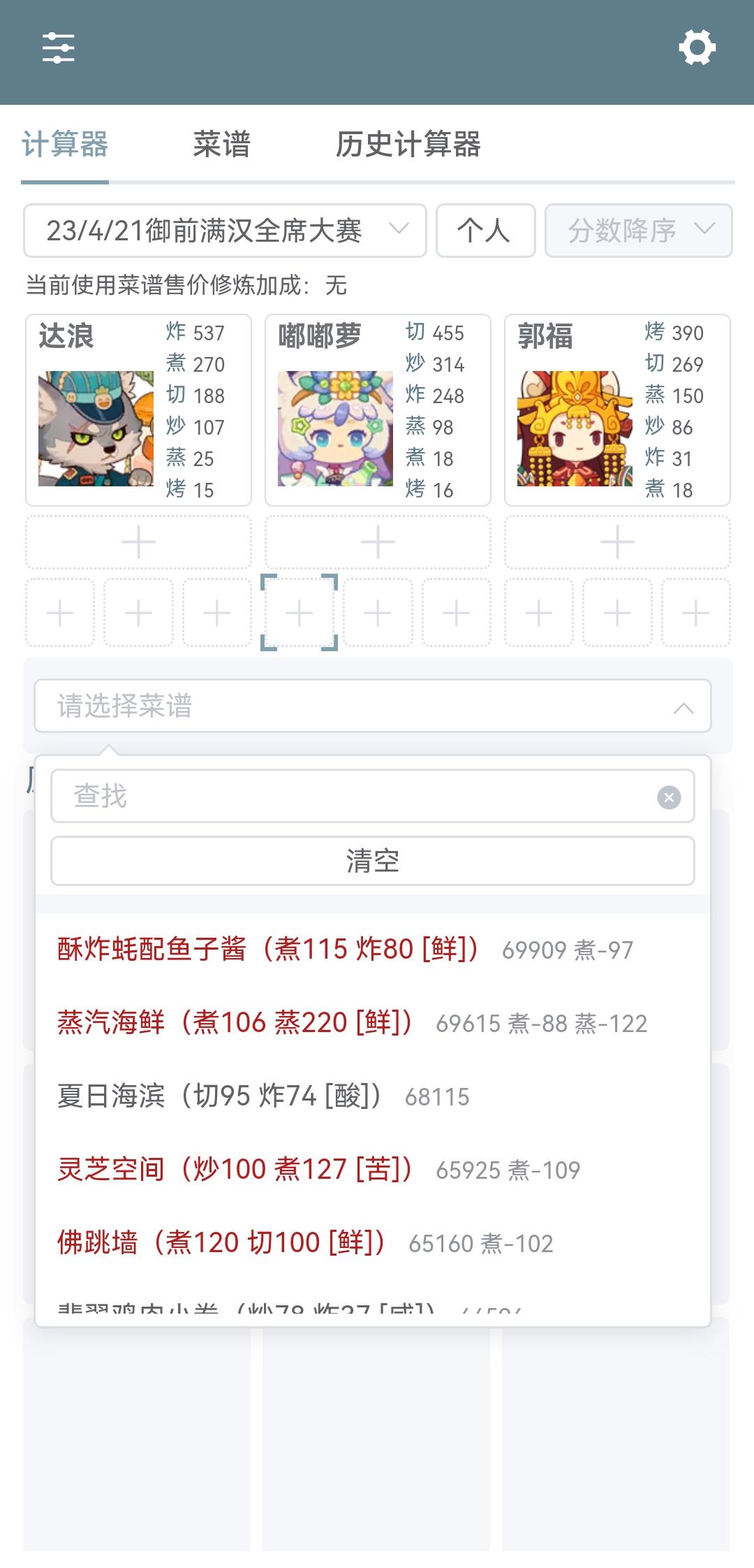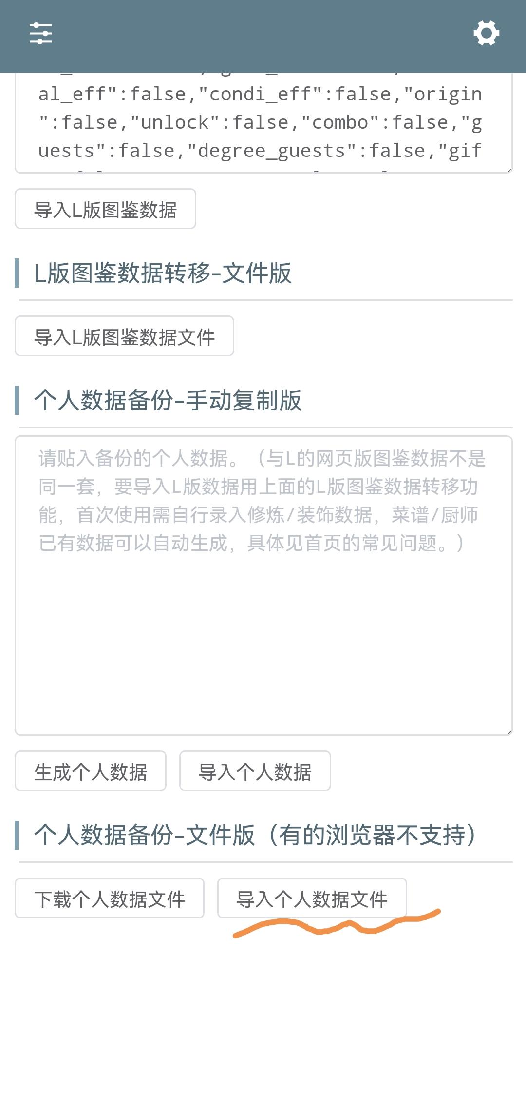 各位大佬,白菜里已有厨师和菜谱是怎么导入的?已经按照说明用app生成了数据,用图1这里导入,但回到计算器页面时还是会显示所有的厨师和菜谱好像,比如图2后面两个厨师还是夏日海滨这菜我是没有的。这次上传的id是70833。能有大佬指导下吗