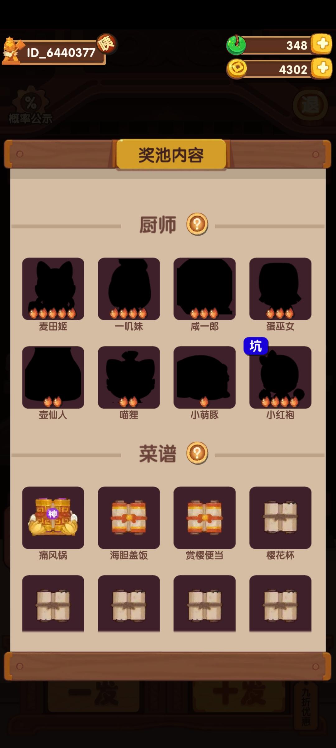 一个星期了已经 感觉拿不到后面的厨师了,,Ծ‸Ծ,,绝望(ಗ ‸ ಗ ) 后面的东西越来越贵