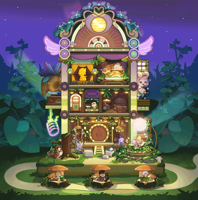 新池子主题夜晚是不是应该加点什么?把后面那三束光移动到前面来,从上面的黄球里面发出,下面的人物蹦迪,这才符合春日狂想,迪斯歌厅定位是不是白天主题应该是歌手呼呼睡大觉(唱了一夜应该补觉),下面的小人顶着黑眼圈出摊。