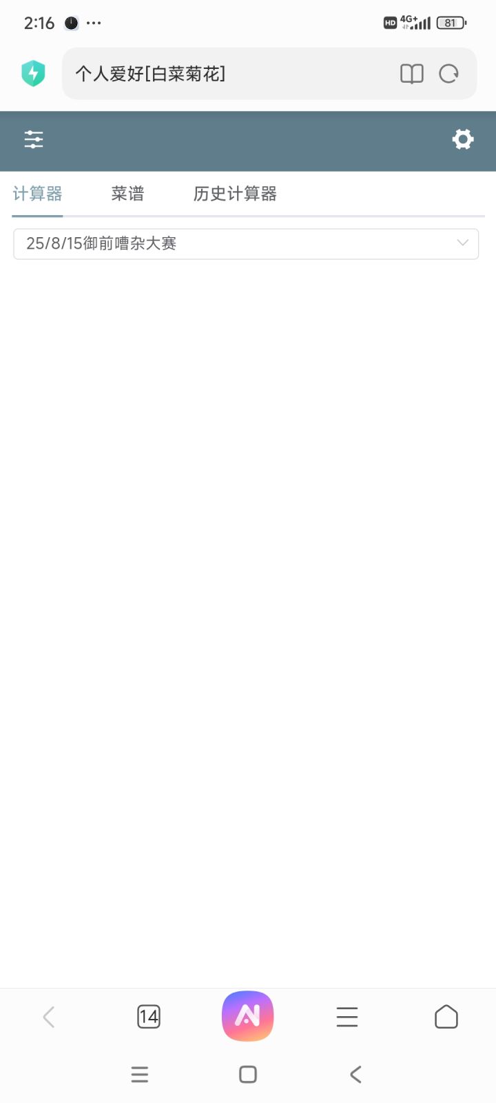 官方接手以后用的网页版白菜菊花,一两个月以前计算器突然不能使用了,其他功能都能正常使用,有没有大佬能指点下什么原因。