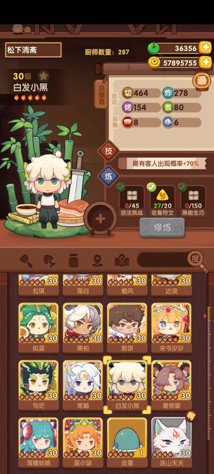 Q1太喜欢罗小黑了,所以直接冲了白发小黑。之前看大家建议贺岁老君做刺客,但之前买了大耳狗是不是效果差不多。剩下几个礼包需要买不?Q2五星厨要怎么修炼,感觉几个五星厨好难修炼,也不知道要怎么配厨具#爆炒江湖 #爆炒江湖萌新