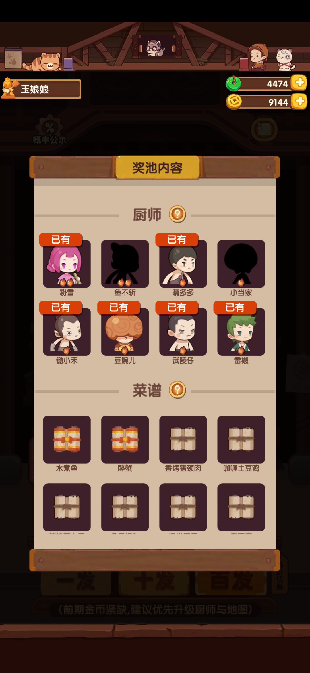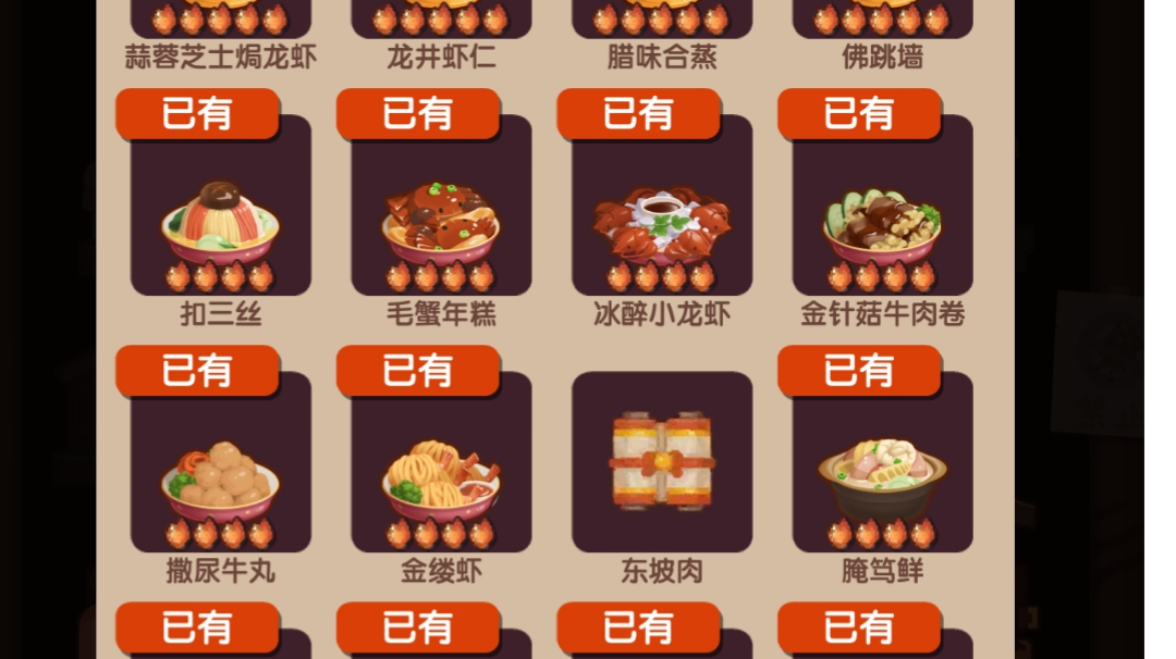 江山池入坑萌新表示,这个游戏菜谱比厨师重要多了。御前甜味大赛我都不敢参加,海鲜够不了中保。