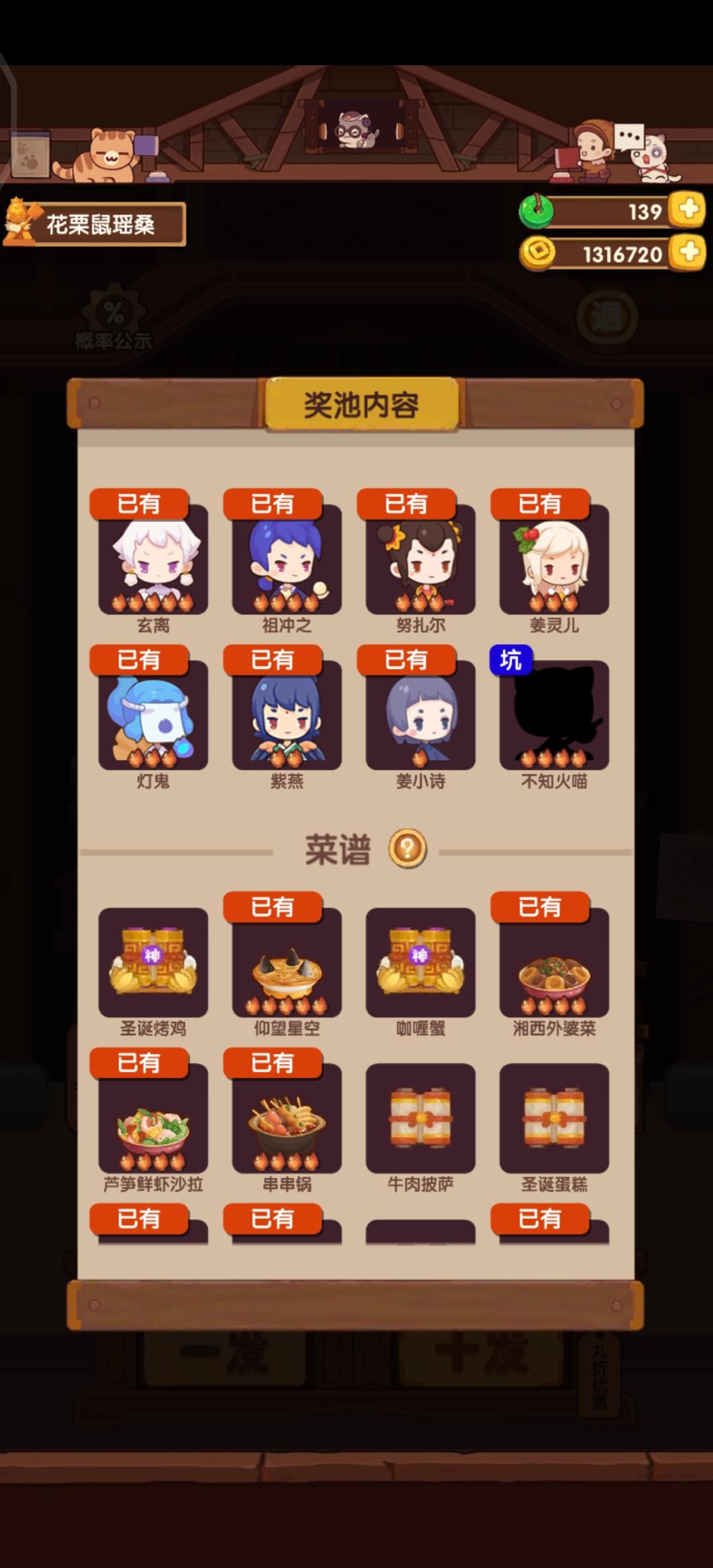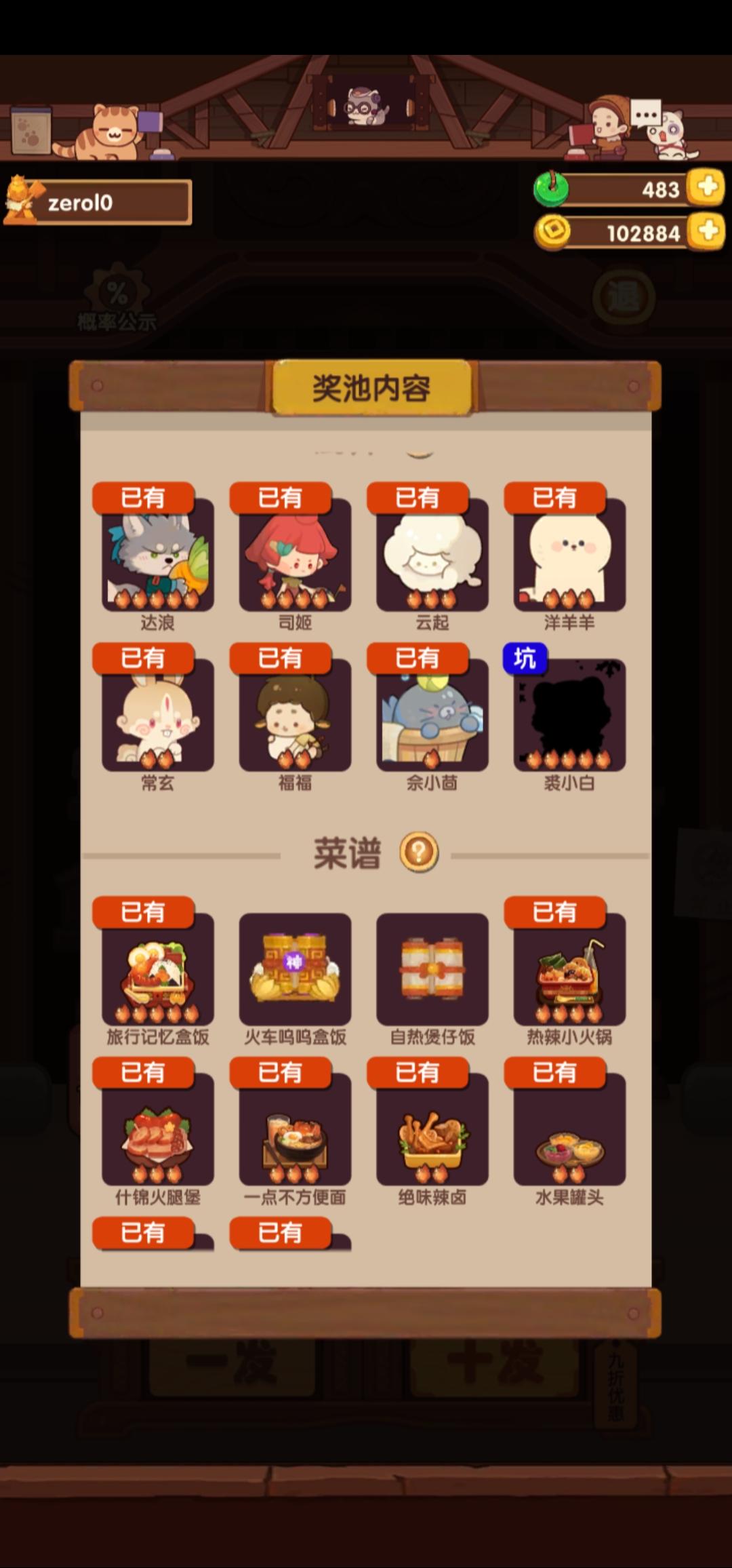 想修炼白发小黑。目前只有一个松鼠桂鱼,战斧牛排还在研发中。已经爆了四五锅了应该快出了。除了端午节的抽了十几发,剩下的一发没抽。现在纠结补哪个池子。😥各位大佬推荐下😢