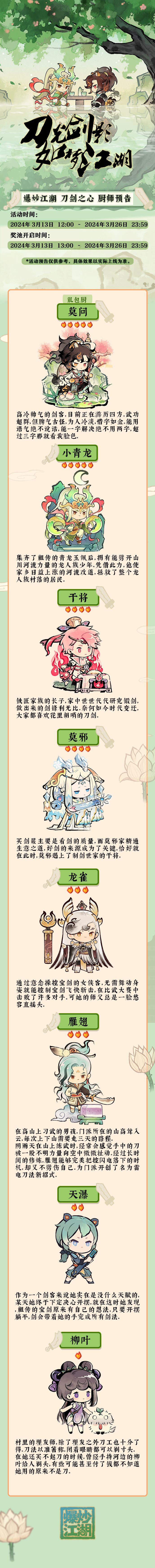 【刀剑之心】爆料第二弹,厨师预告!
