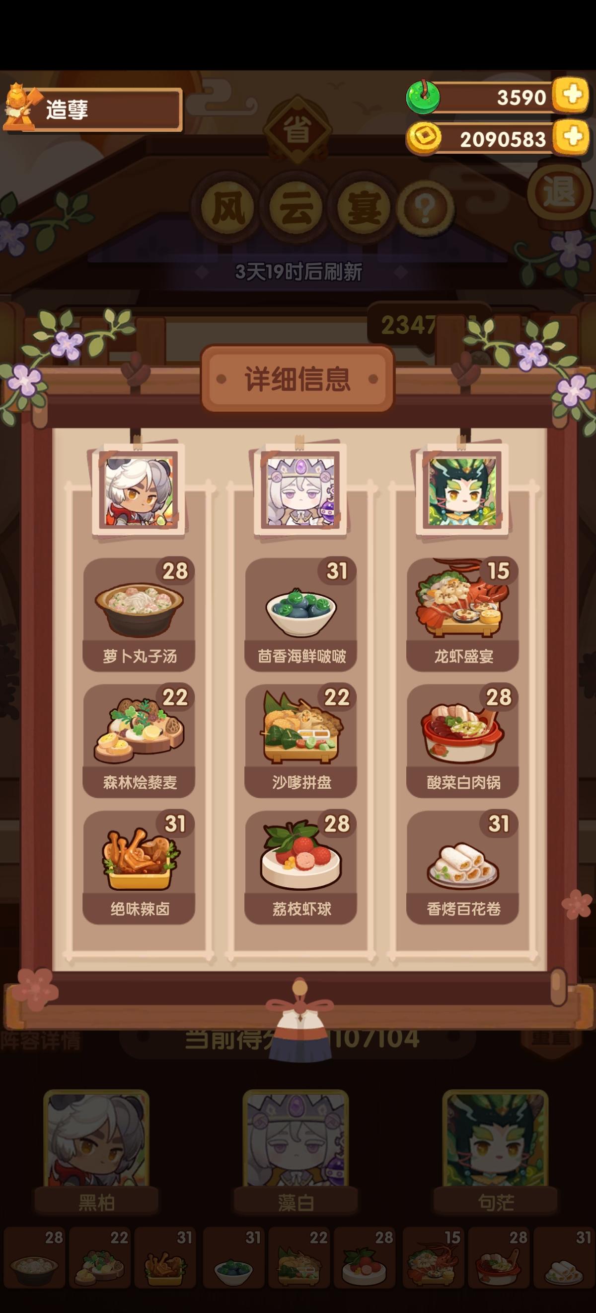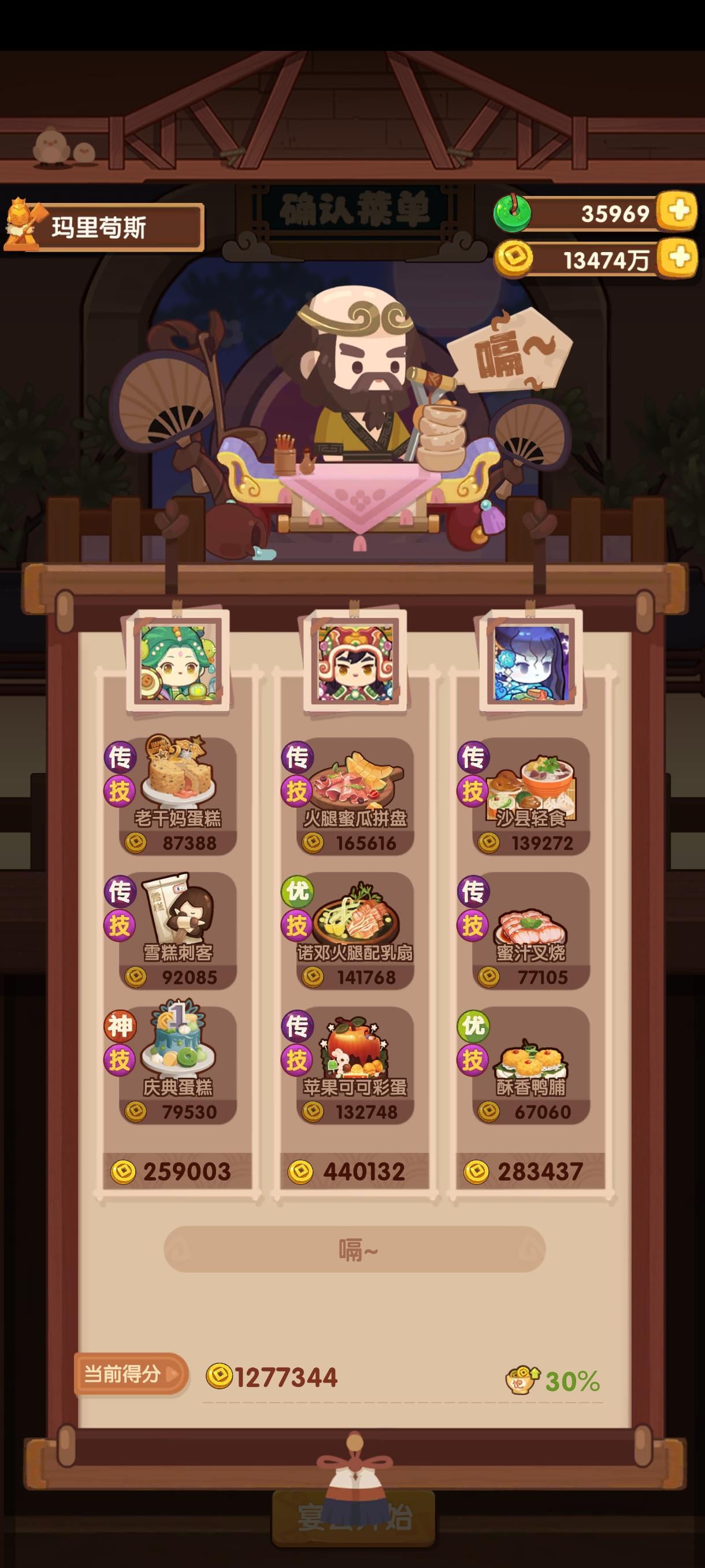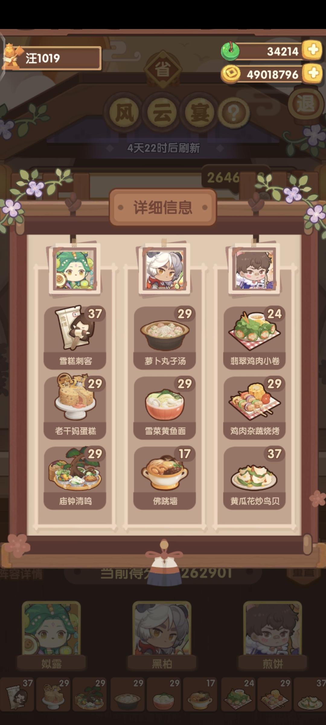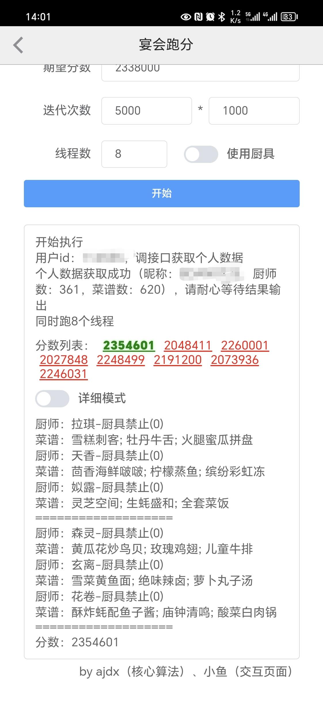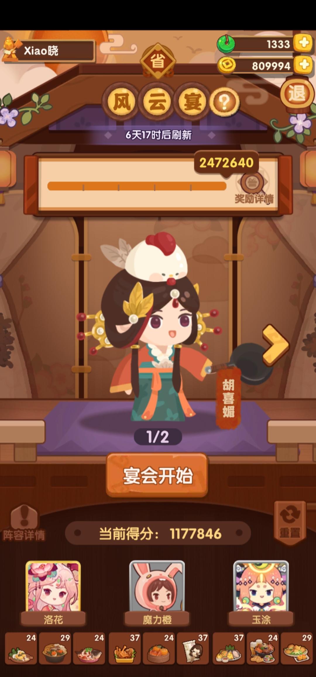 前排提醒①需要一定的高分菜专精和菜谱上限(3星上限越多越好,≥3可以稳过),否则可能会差几万到十几万。②有BBQ会轻松点,用P2方案,没则用P3(仅换了黑柏厨具和煎饼菜谱)。厨具加分最高的的是藻白和黑柏,如果要调换可以先换他们的。③菜谱,厨师,厨具,专精有限,大伙可以到图鉴网自行调换更合适的。