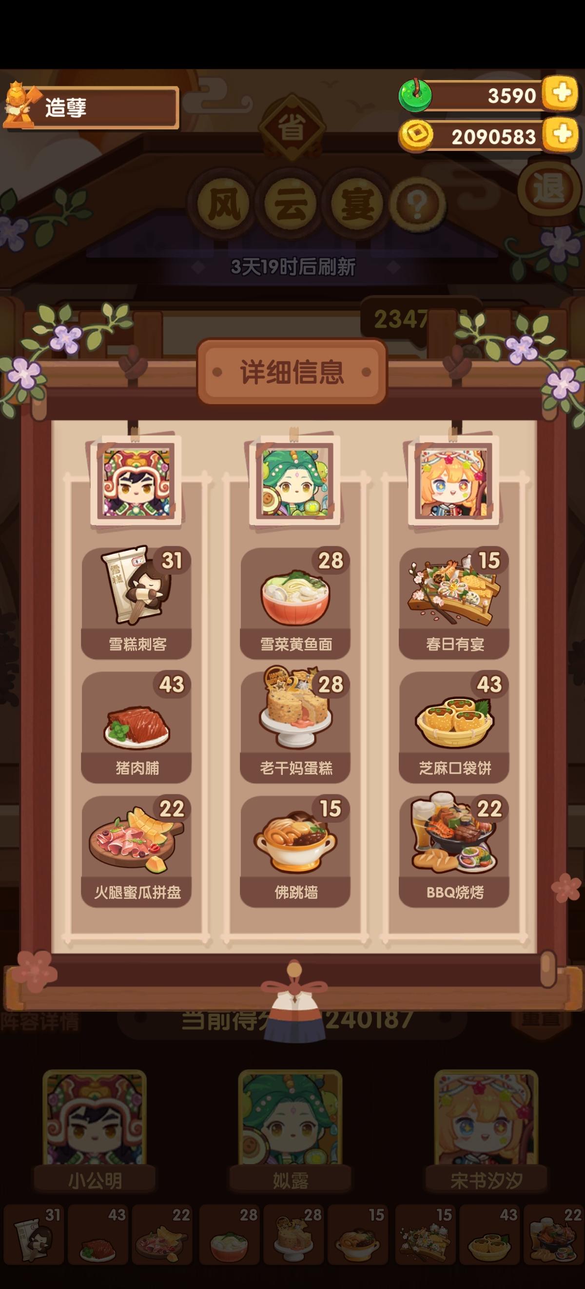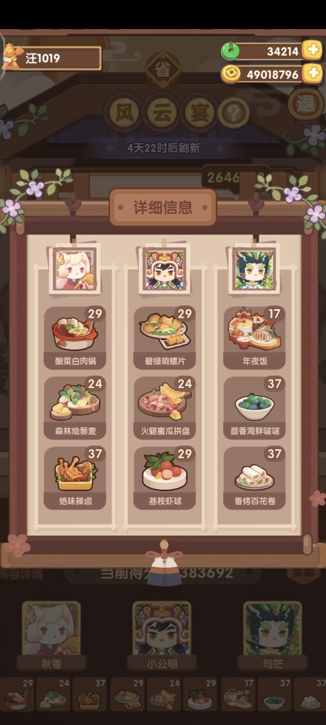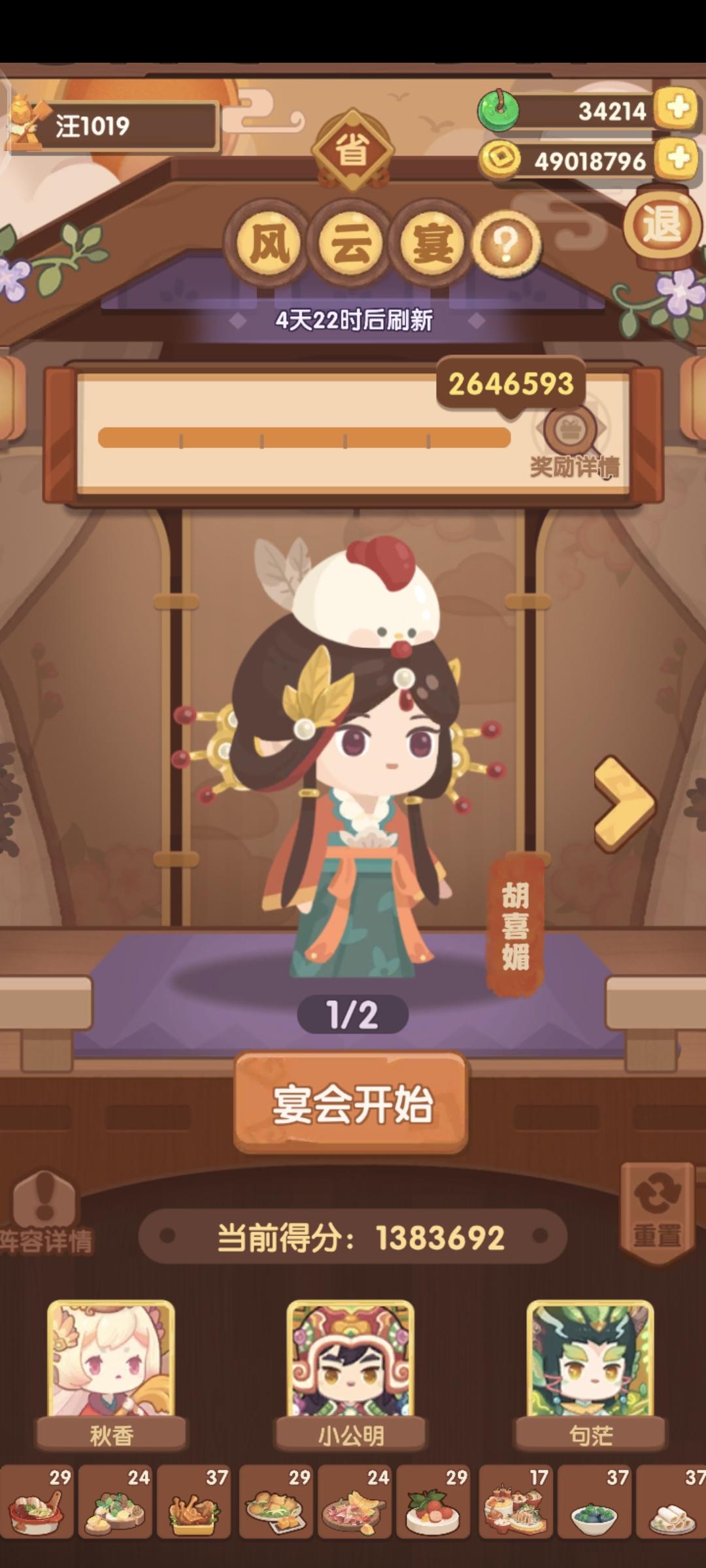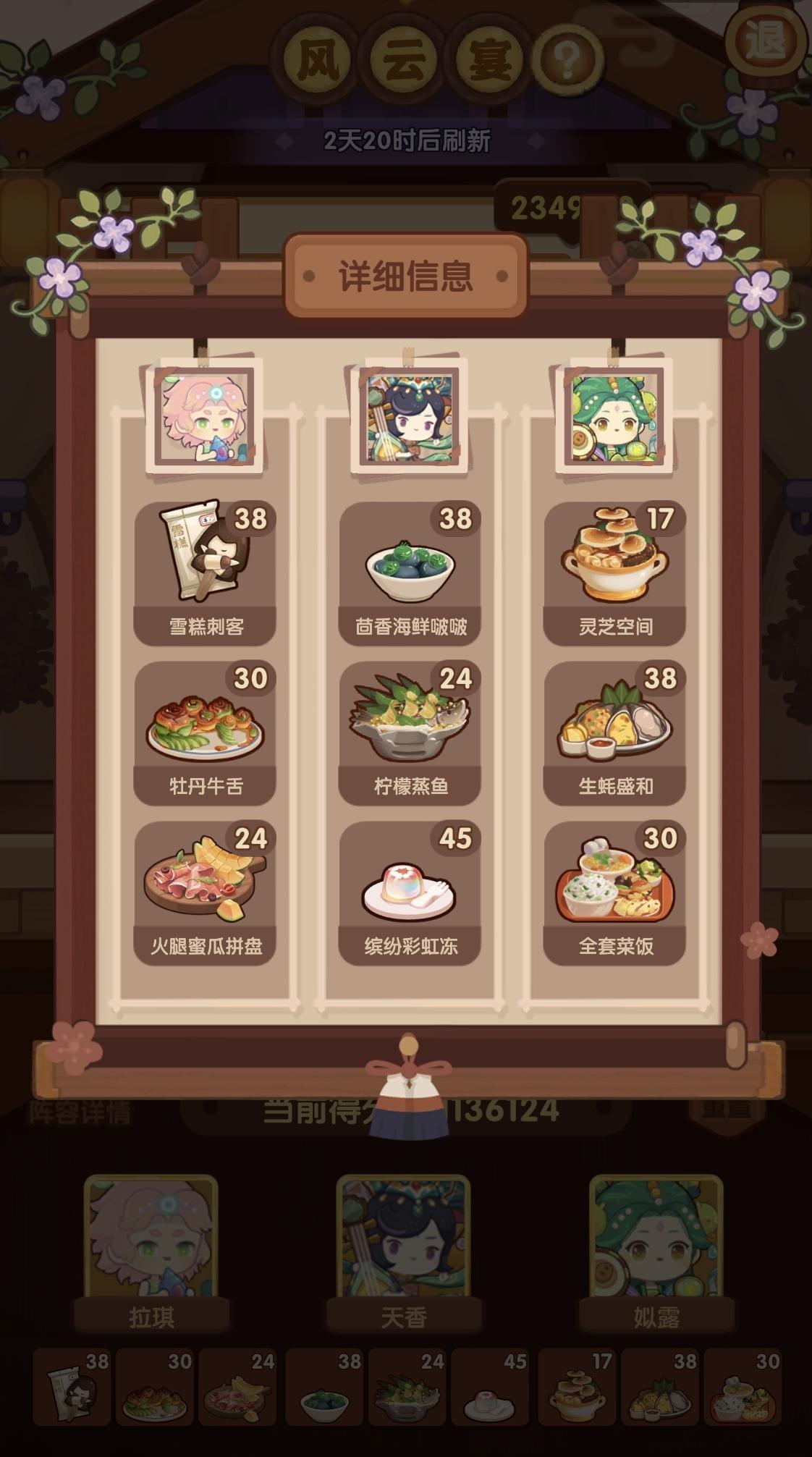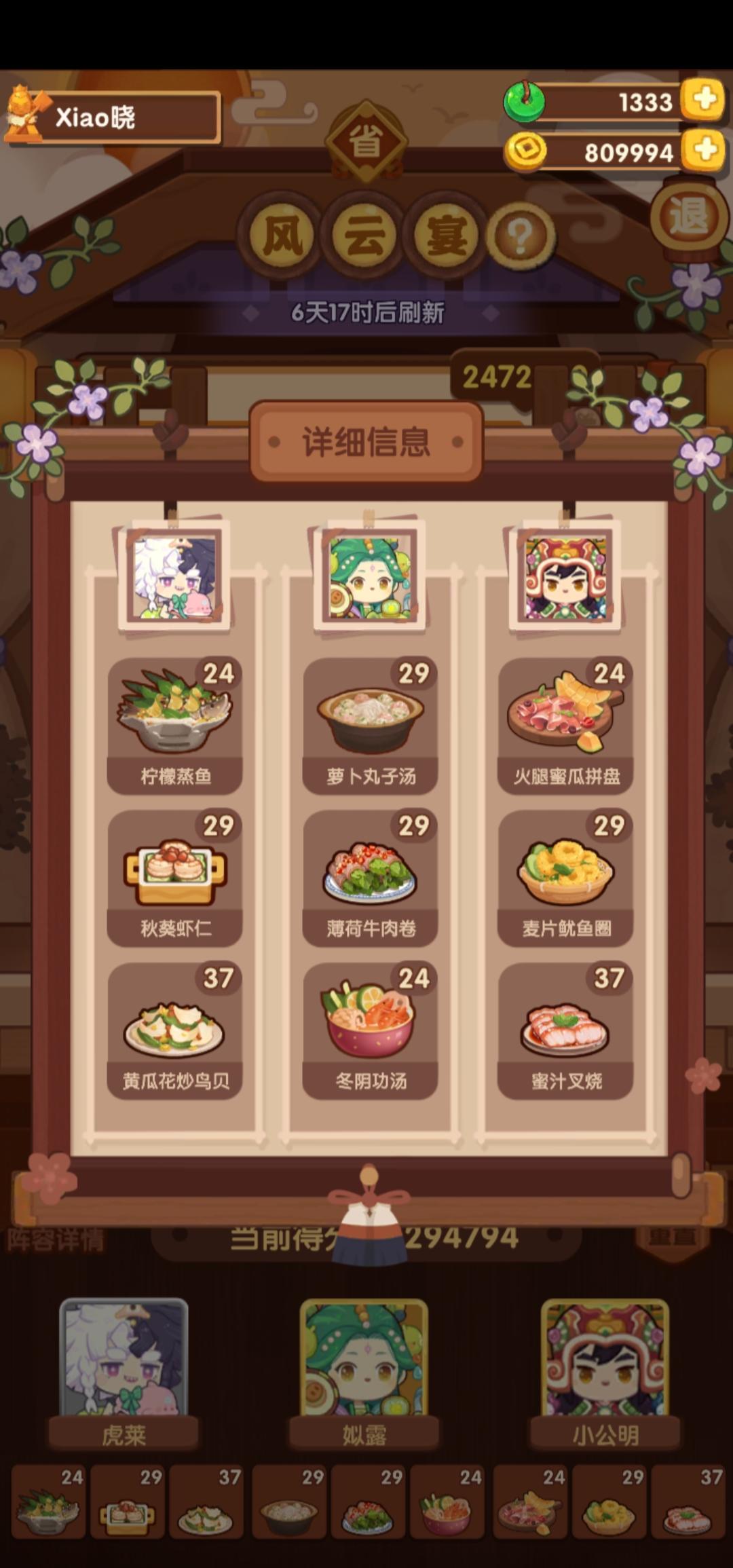 前排提醒①需要一定的高分菜专精和菜谱上限(3星上限越多越好,≥3可以稳过),否则可能会差几万到十几万。②有BBQ会轻松点,用P2方案,没则用P3(仅换了黑柏厨具和煎饼菜谱)。厨具加分最高的的是藻白和黑柏,如果要调换可以先换他们的。③菜谱,厨师,厨具,专精有限,大伙可以到图鉴网自行调换更合适的。