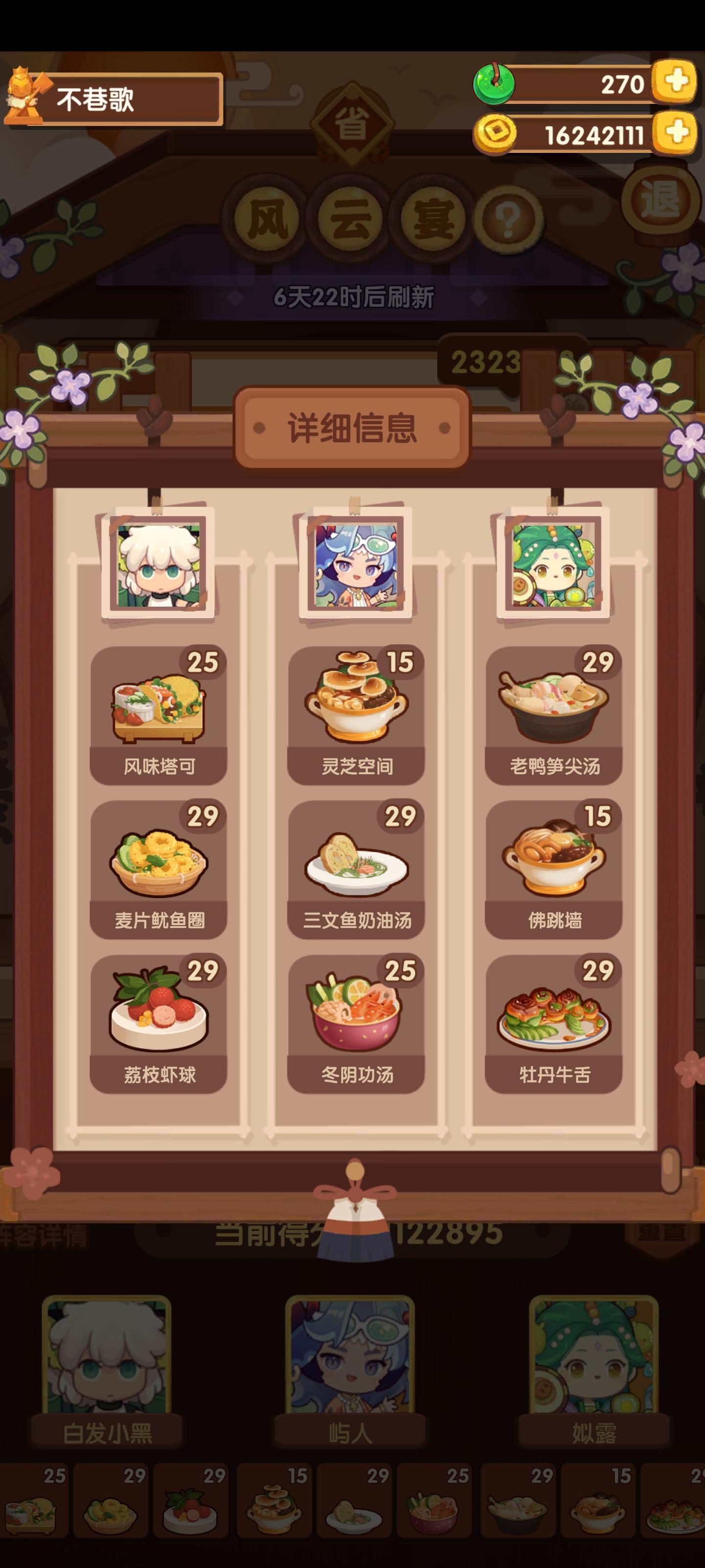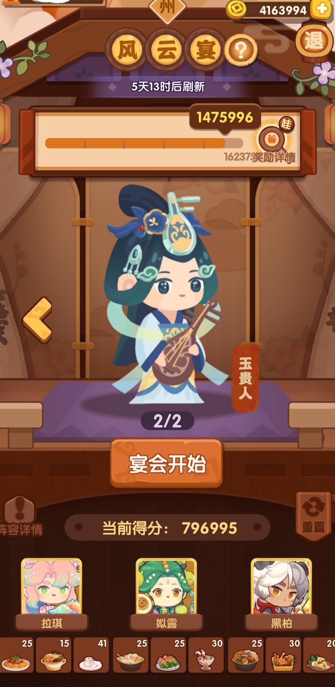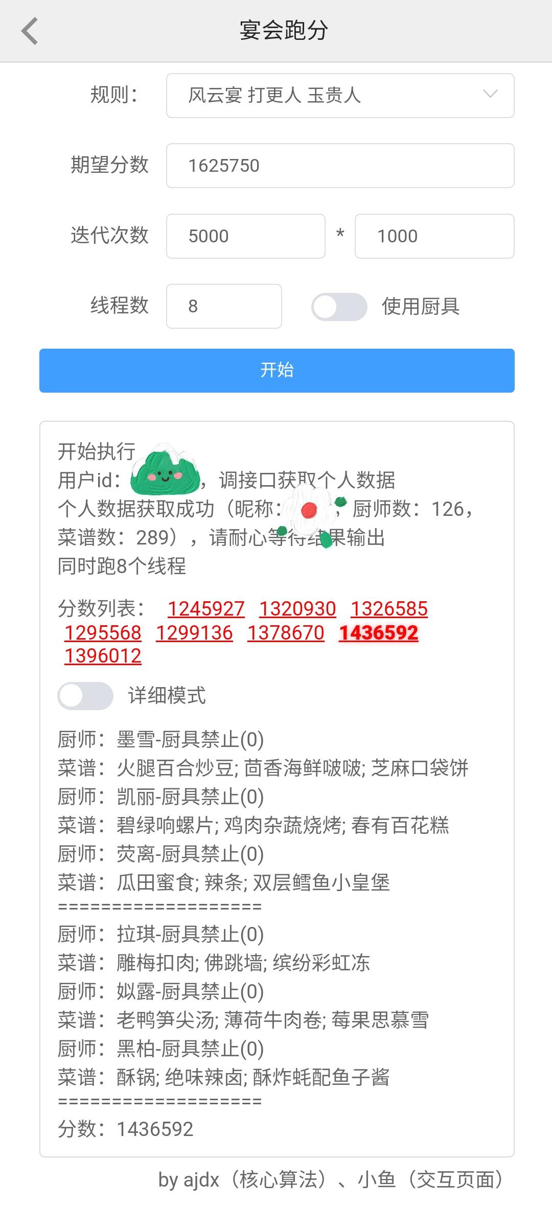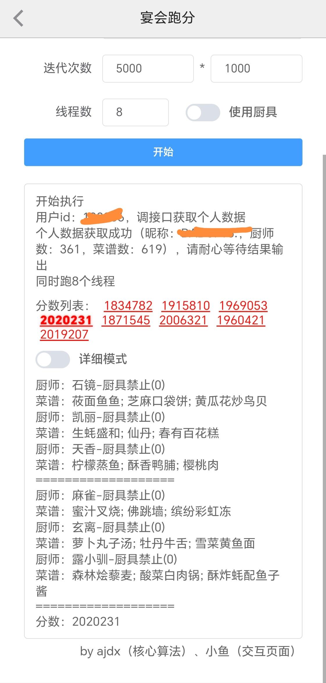 之前出现饱食度几百,分数负的,总分爆炸的问题尝试在GitHub高效版修复了,主要原因是之前加了光环厨师对下一位的影响,然后换厨师的时候,下一个厨师可能就做不了了orz如果之后没有相关问题的话,在线版也会也会后续更新