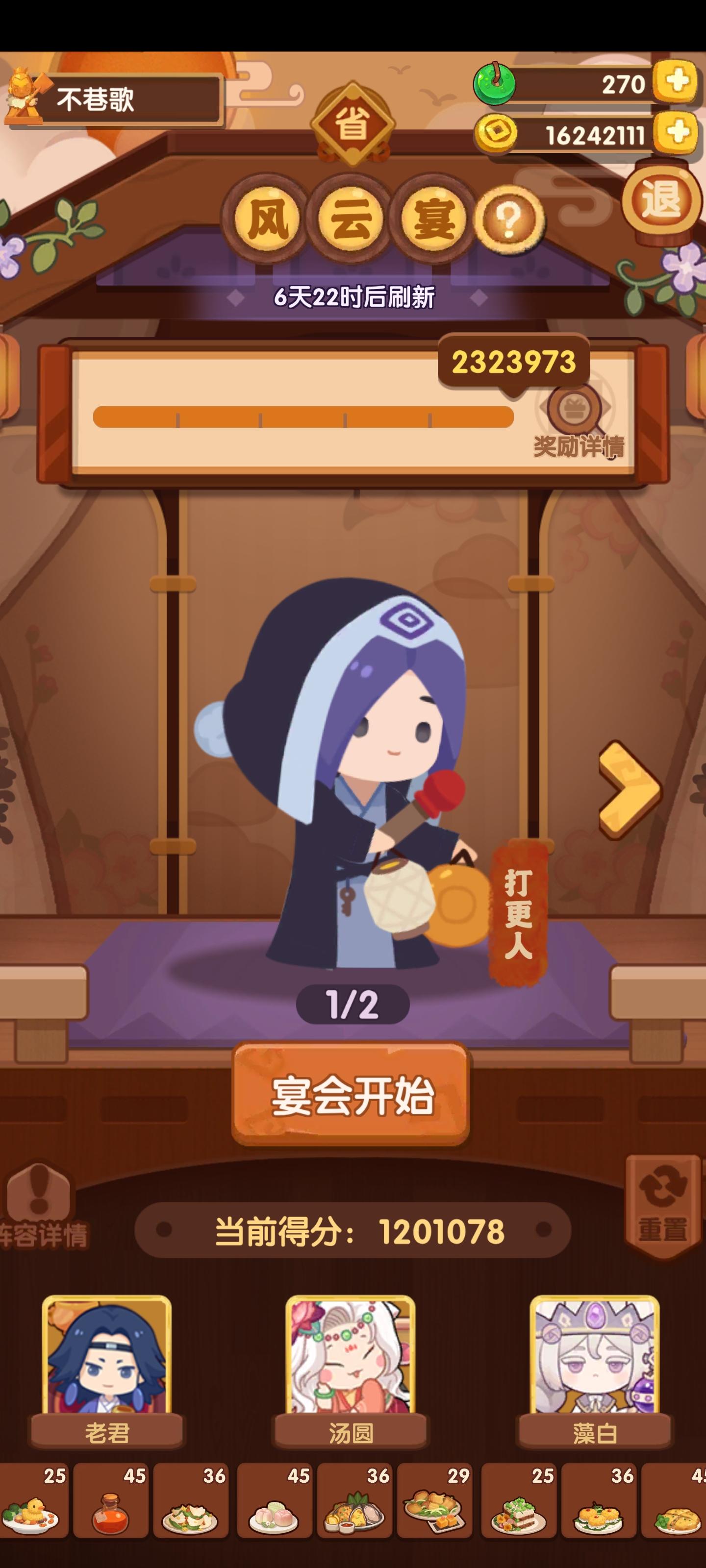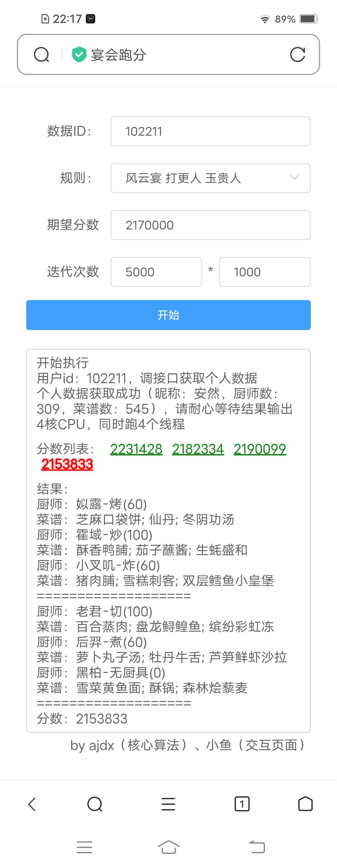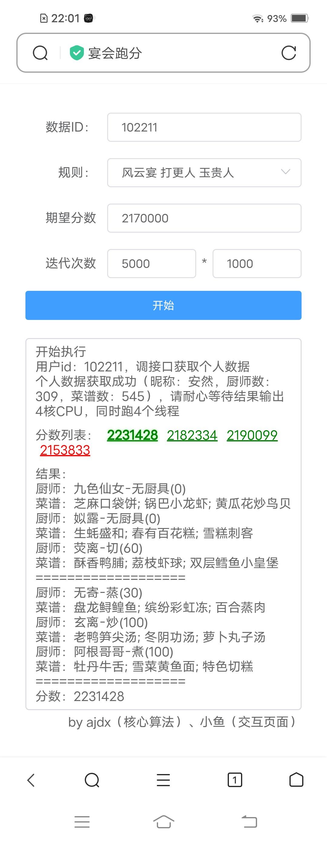 该说不说,这网页版也很流弊了!还帮我算了厨具加成!也就是我好多菜没专精,而且这一轮里最顶分的烛光晚餐、年夜饭还有蒸汽海鲜之类的大菜没有,不然应该也能过三百万+的那个档