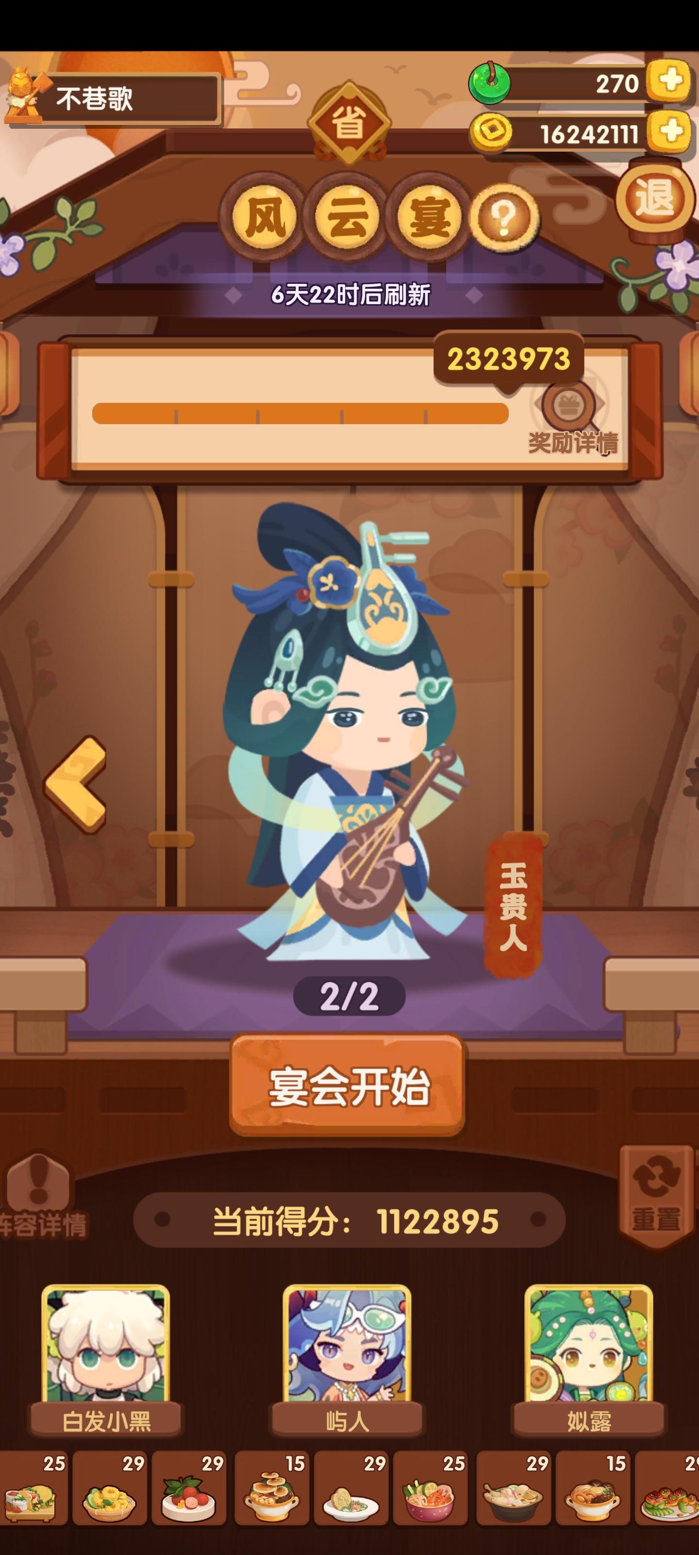 前段时间忙着加班落了很多进度,今天自己试了试郡级的宴会,死活都过不去,上周也是,看着上面都有计算器了,算了一下上面的可以过,有点急,求好心大佬帮帮忙。ID:101688,救救孩子,十分感谢