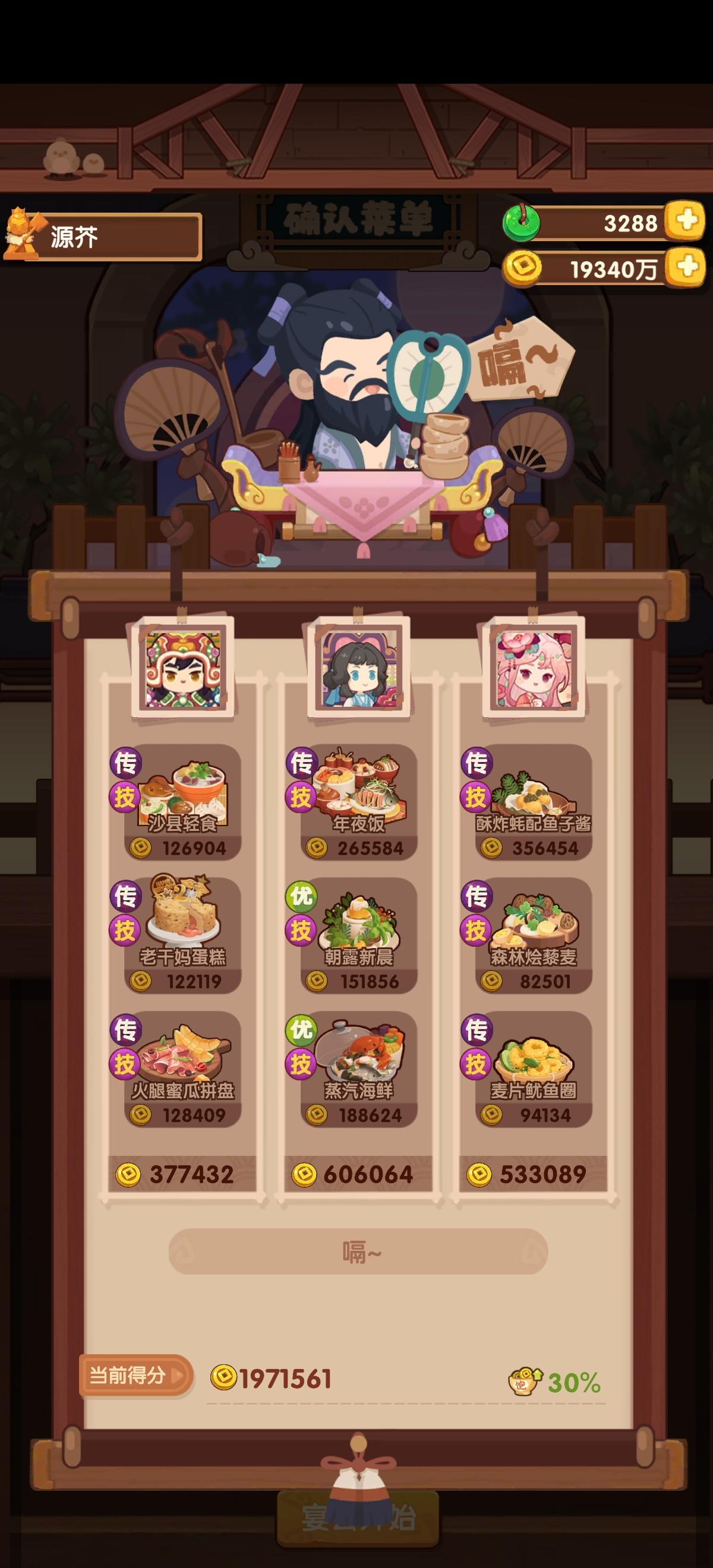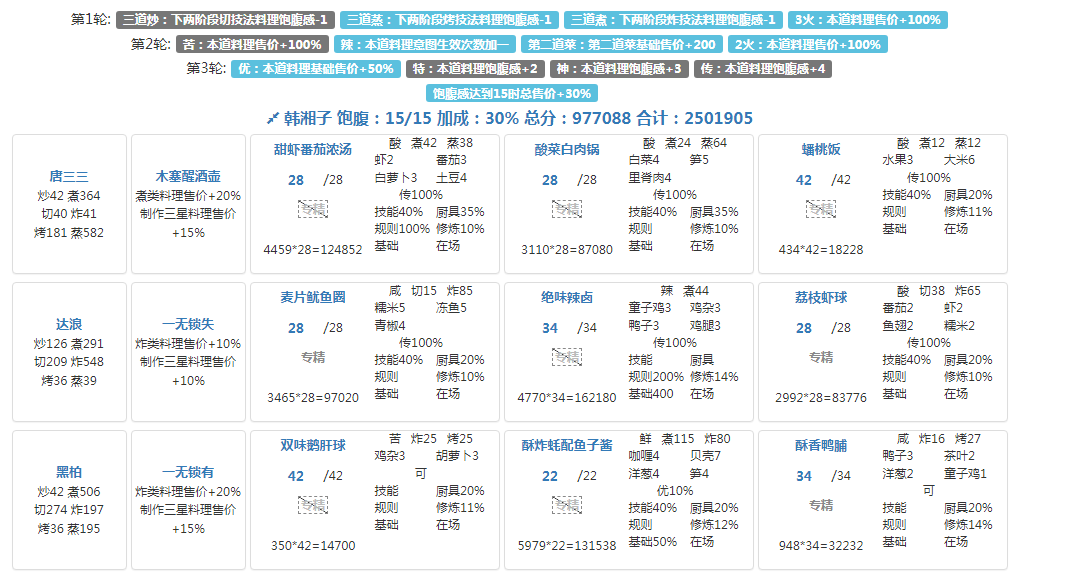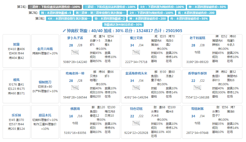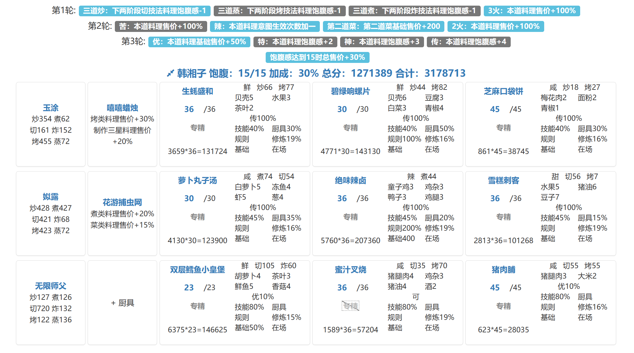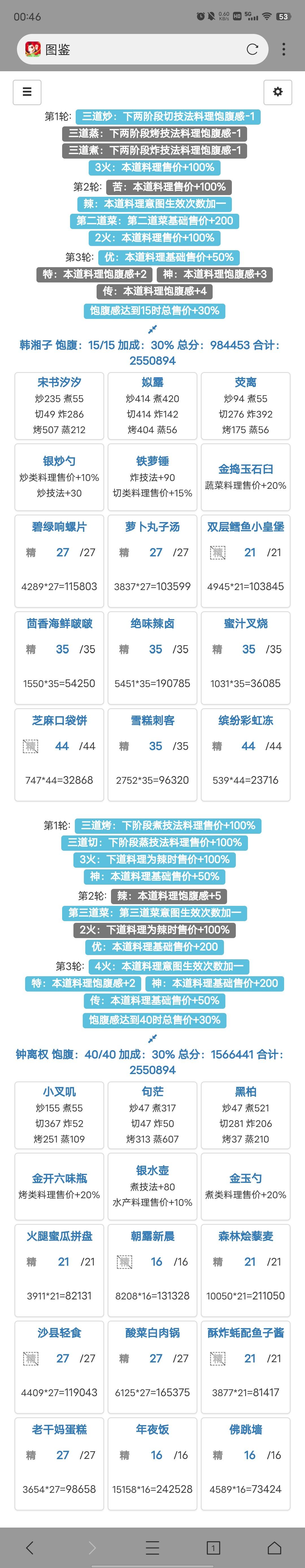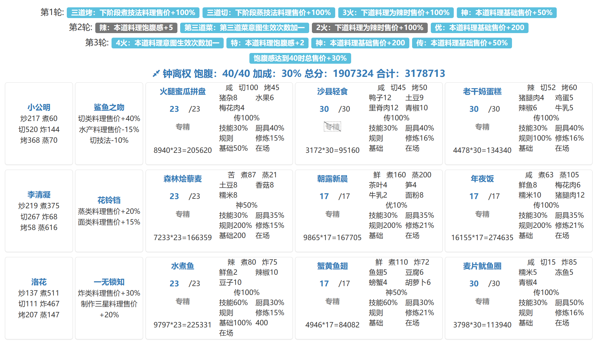 折腾了很久,最后找了一个作业抄,厨具就是图五图六上的厨具,但是钟离权的作业和图六不一样,是我自己搞的,实在上不去317万,就这样吧,摆烂了!PS:这个图鉴网好难搞,完全没有白菜菊花好懂,弄的我心好累