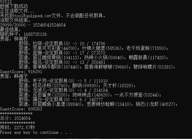 根据大佬的韩湘子思路 优化了一下现在只用刷一个年夜饭的专精了感谢大佬的作业!