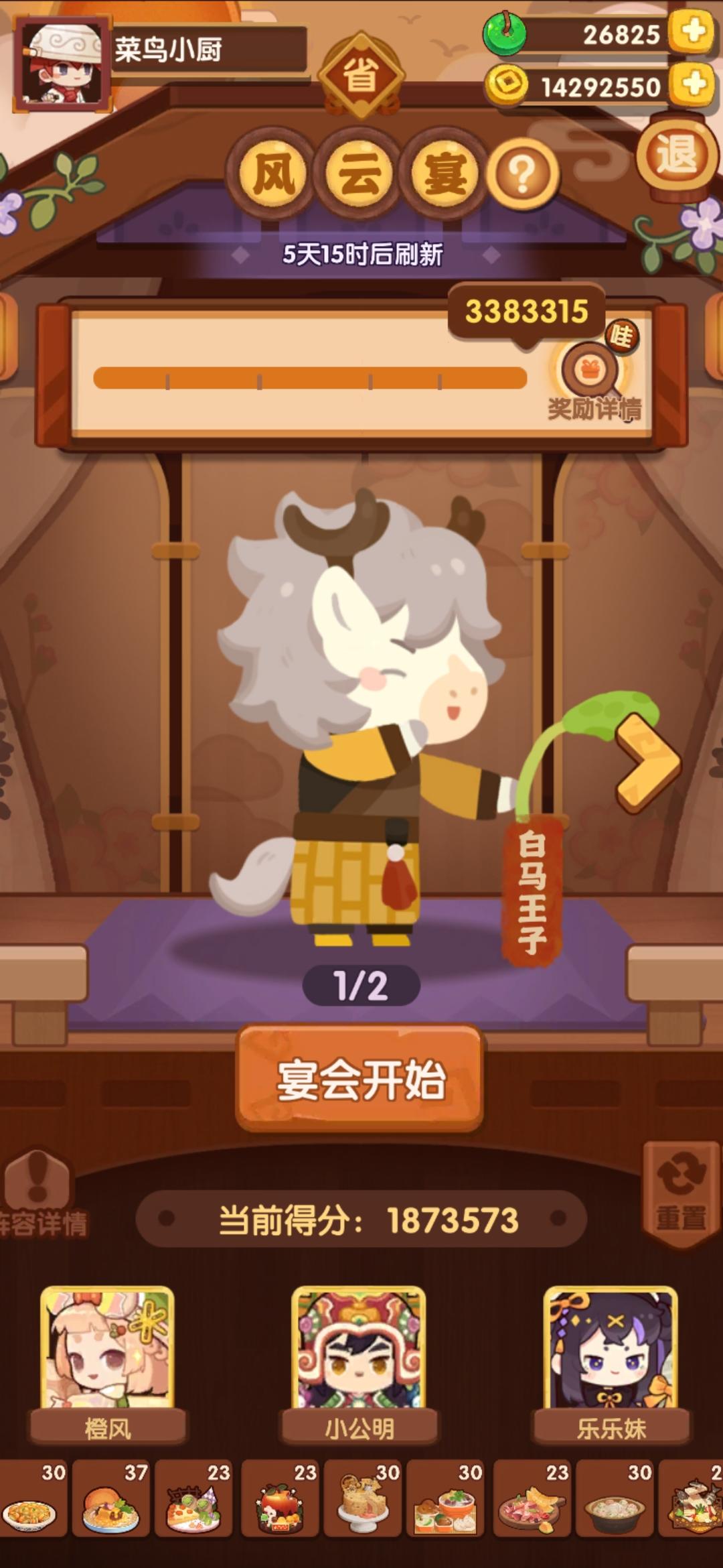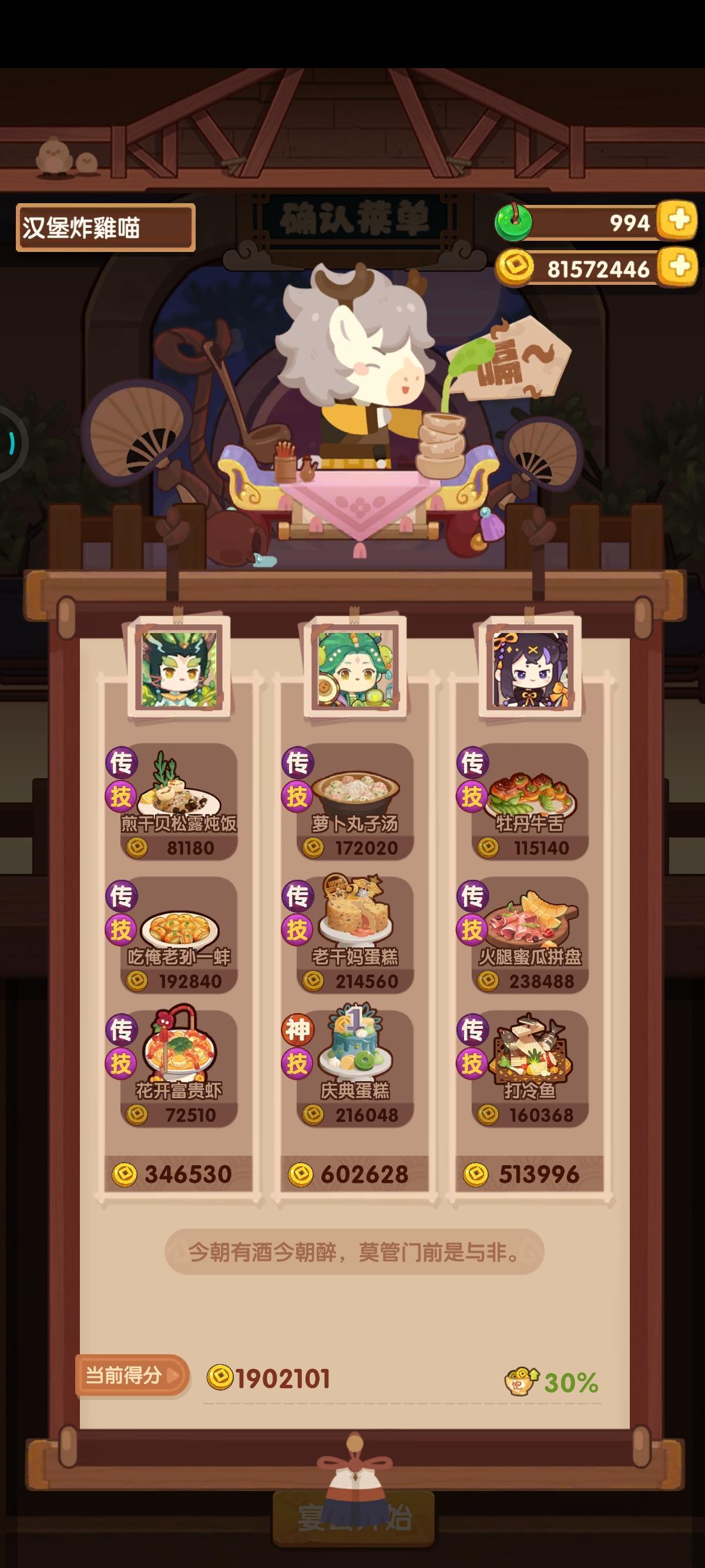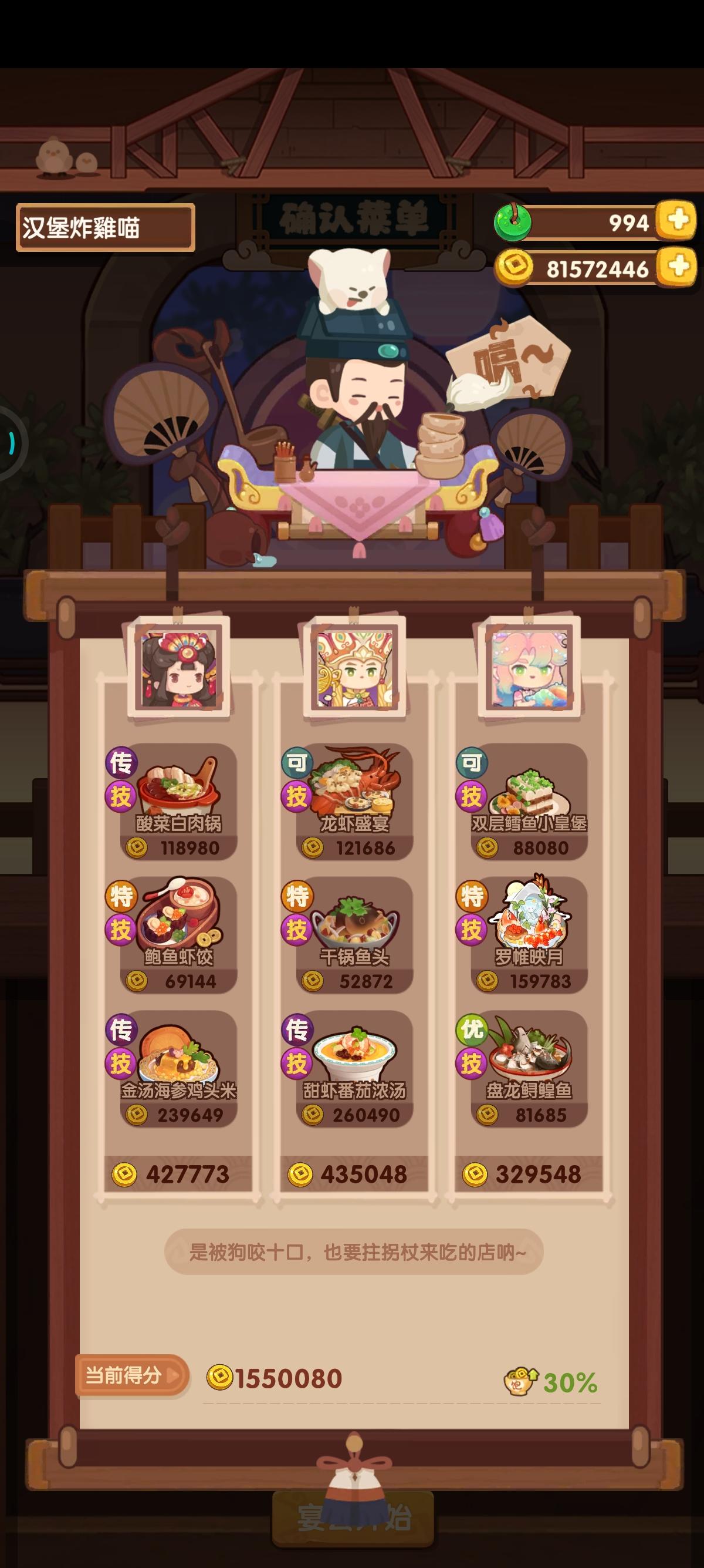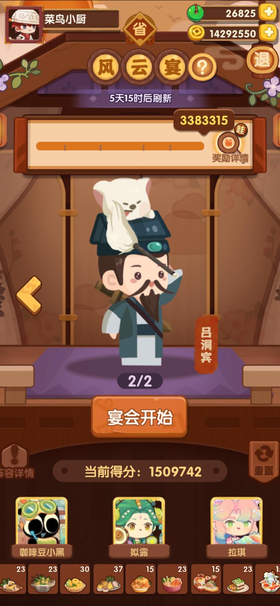总分3449135,应该是加上厨具分数够了。感谢大佬的计算器~~无寄-锋利竹针小公明-飞萝锤常鹅-纯金指尖暗刀