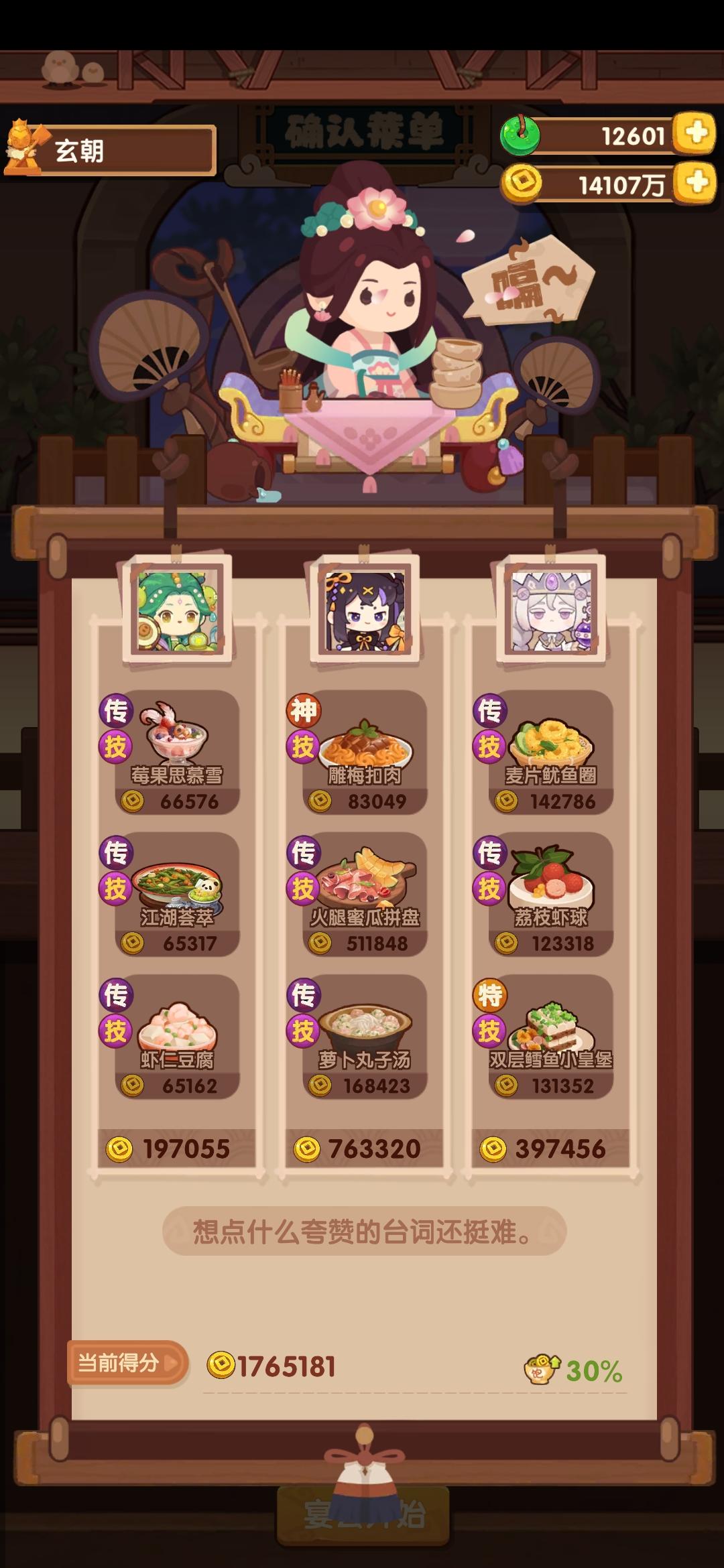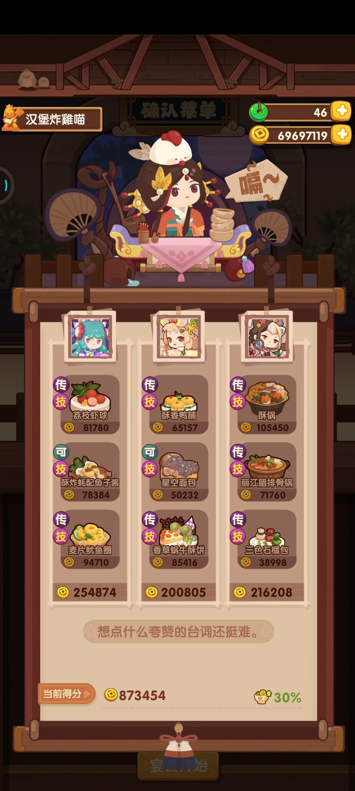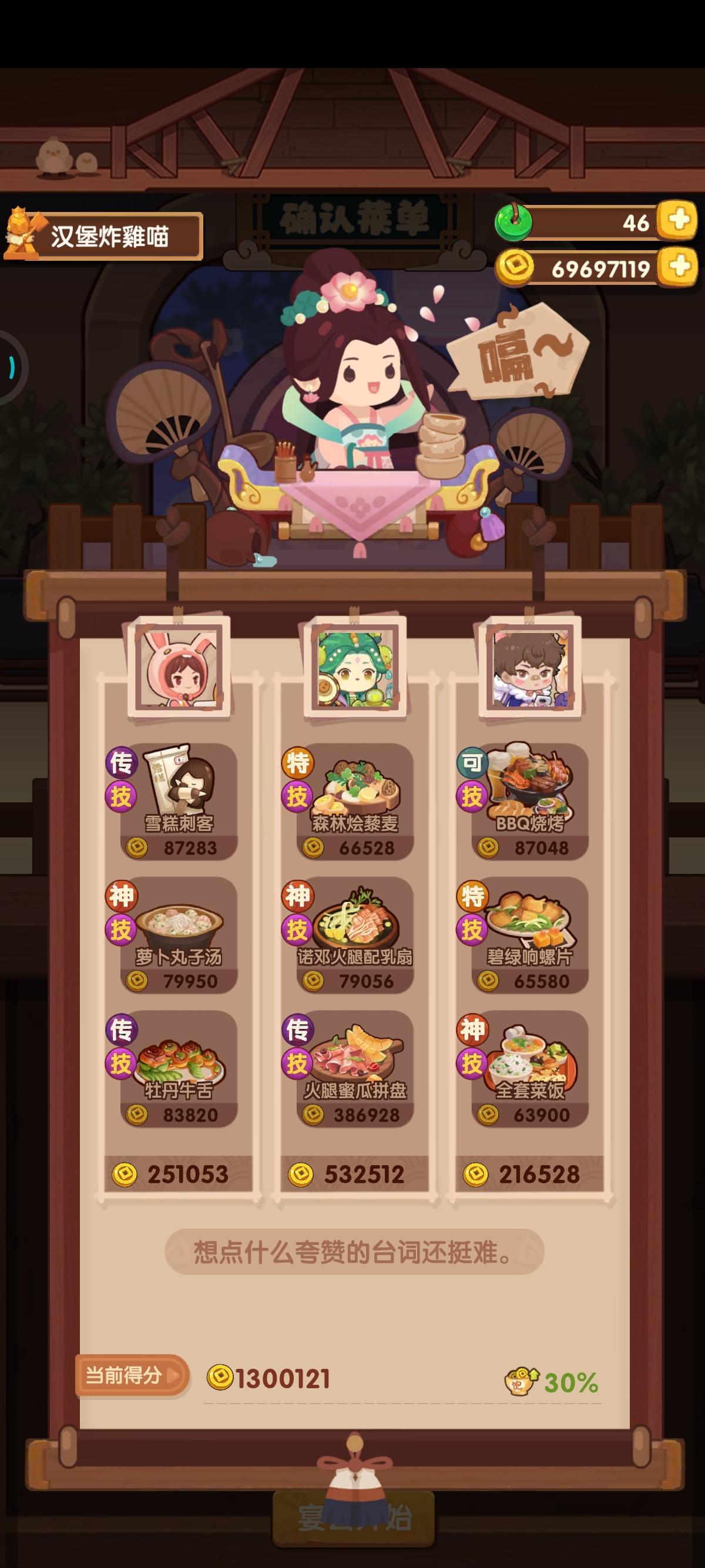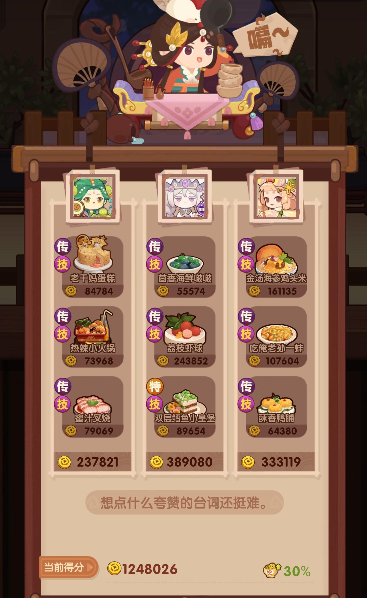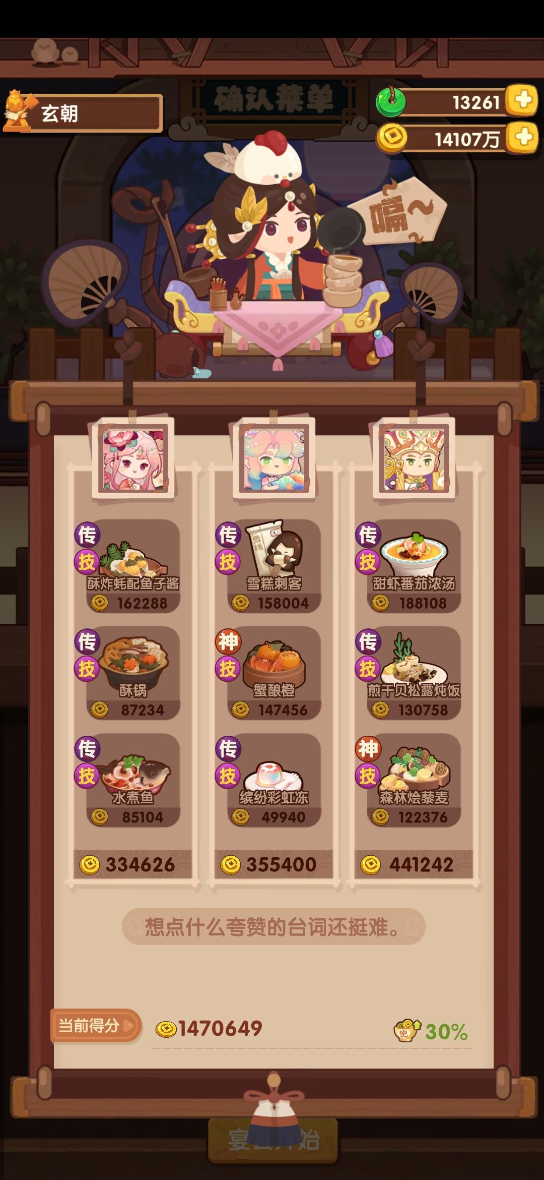 白菜里面手动输入菜谱和厨师后第一次宴会拿满了
