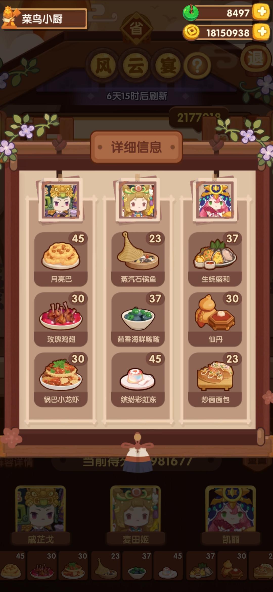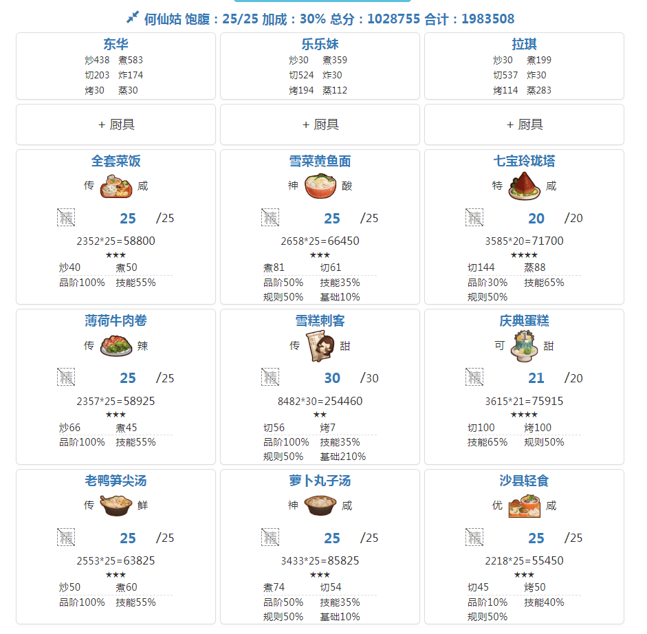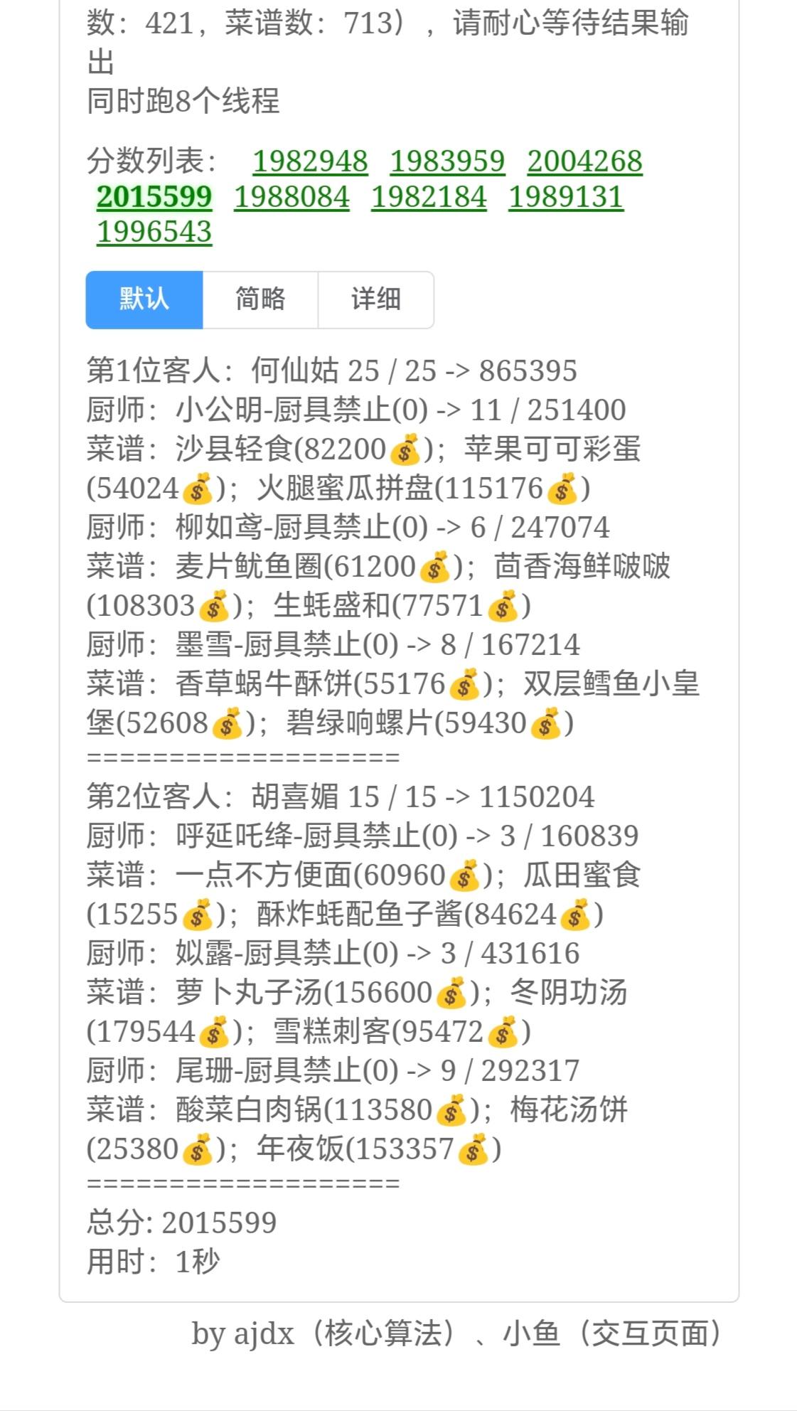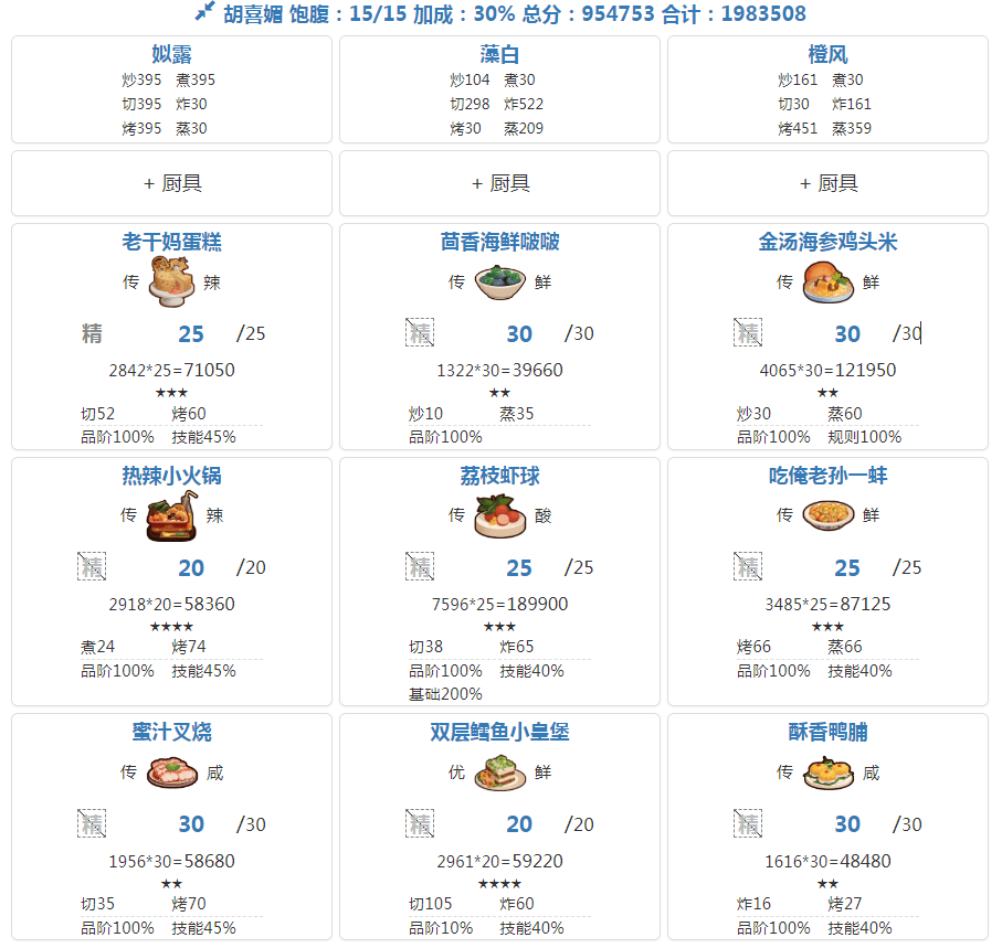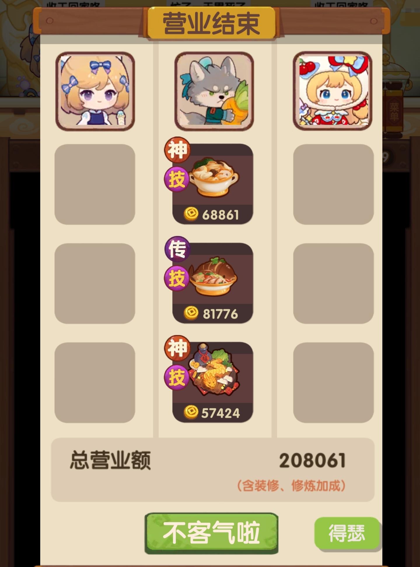 白菜里面手动输入菜谱和厨师后第一次宴会拿满了