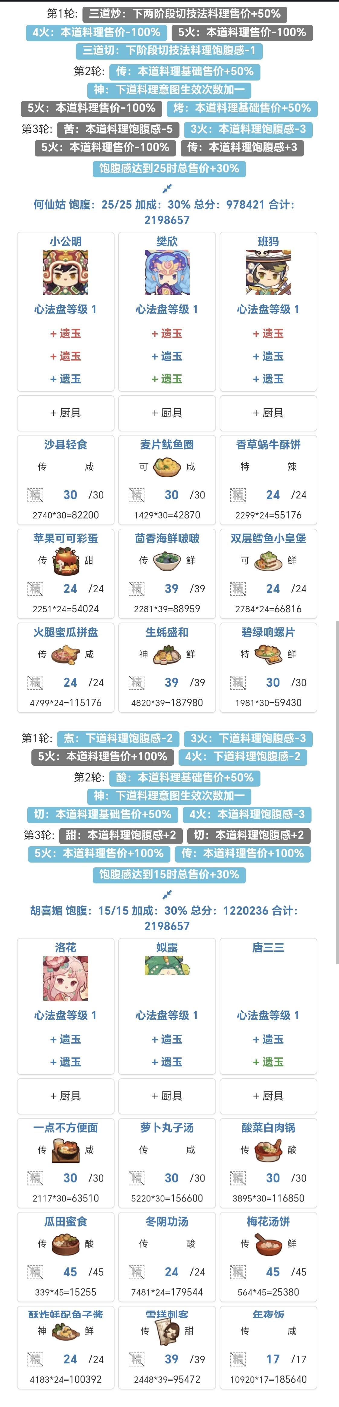 2.9宴会(何仙姑&胡喜媚)无氪金厨和后厨菜