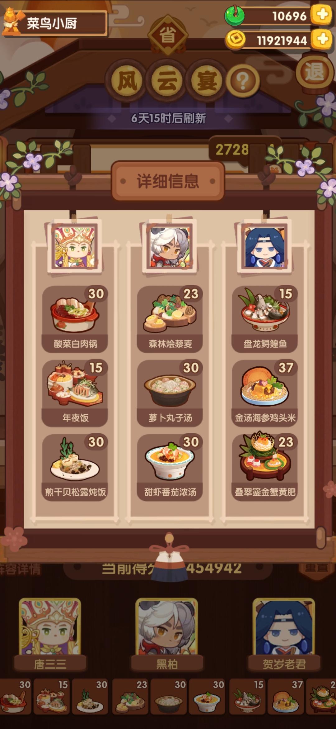 这期好难,靠着部分专精和给赤帝带了蒸+100的厨具勉强吃上了低保。