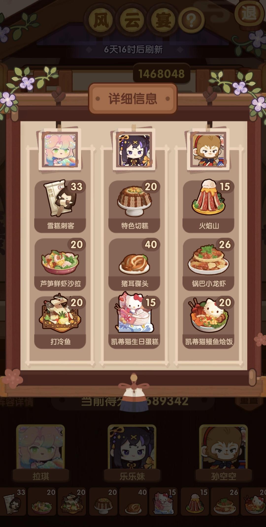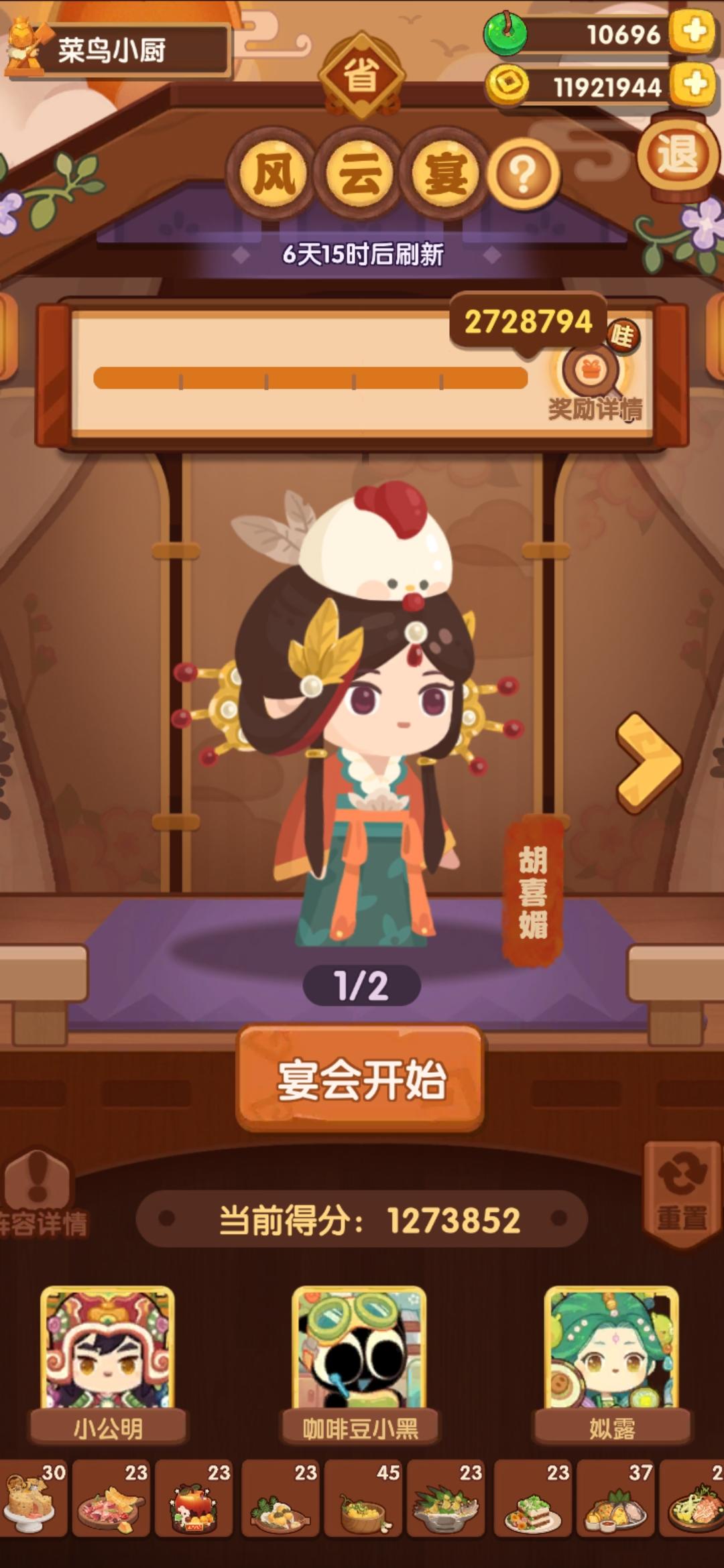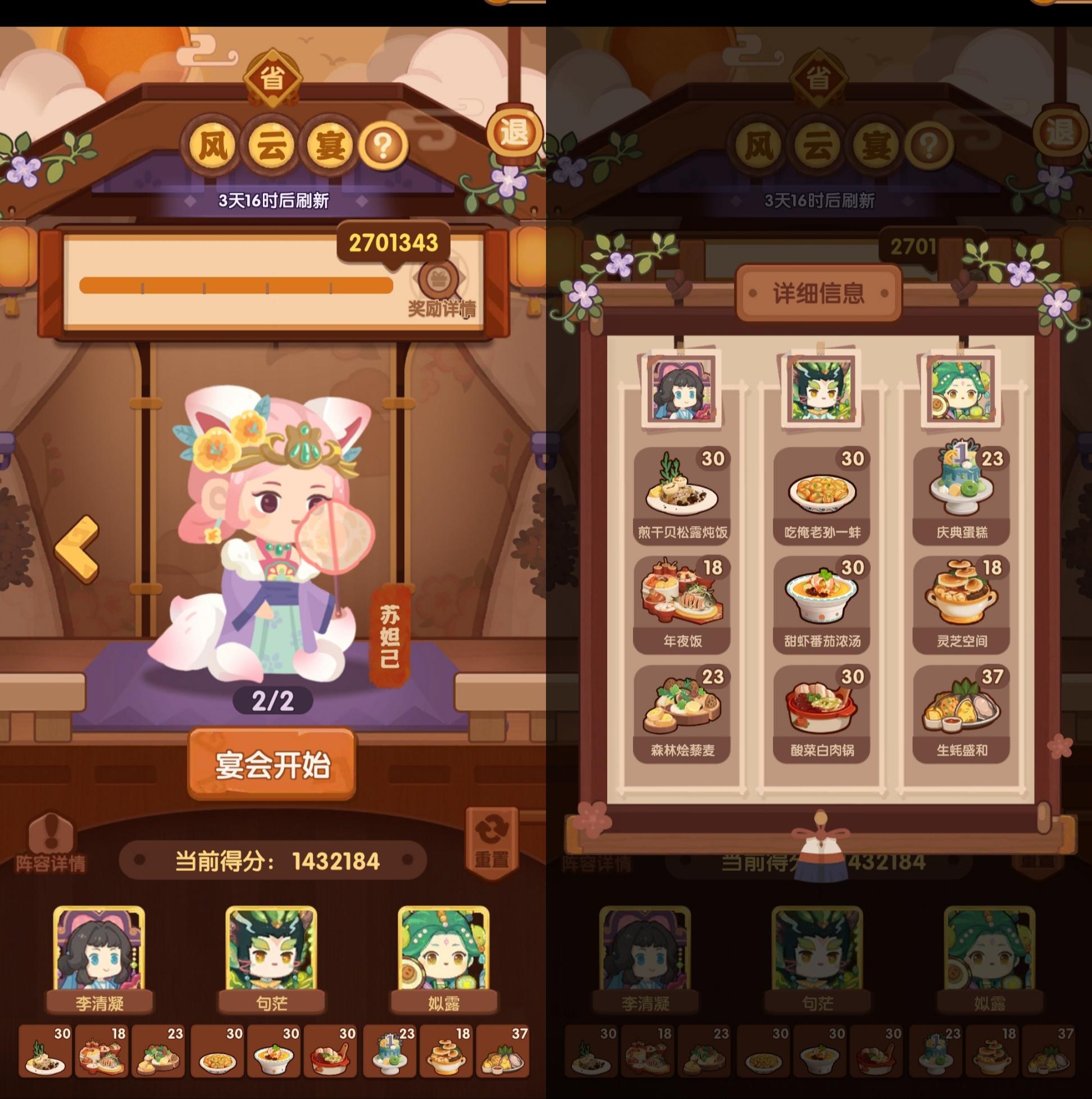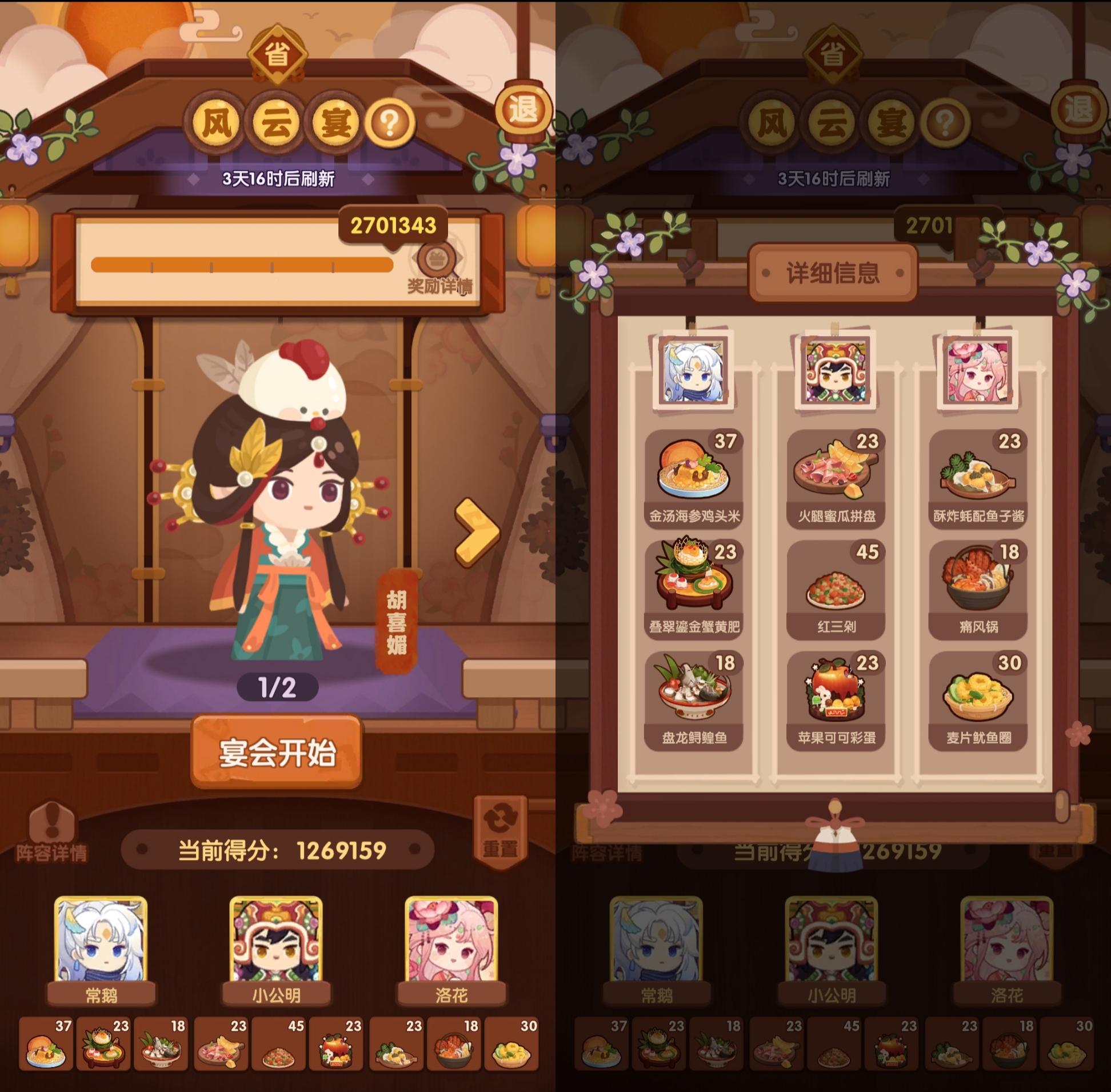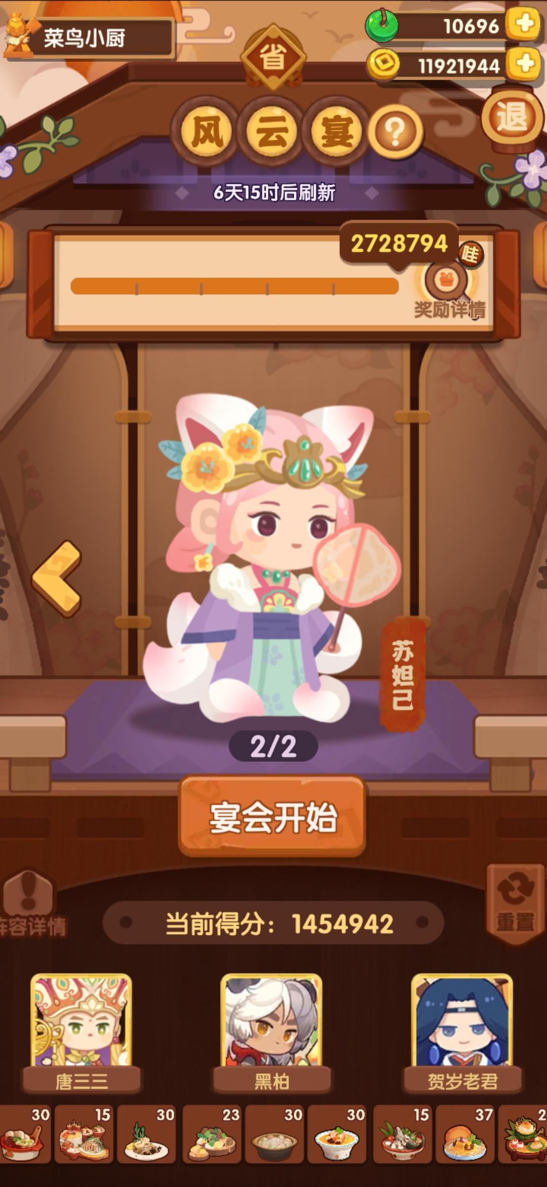 新手厨具宴会➢胡喜媚、苏妲己➢2621000