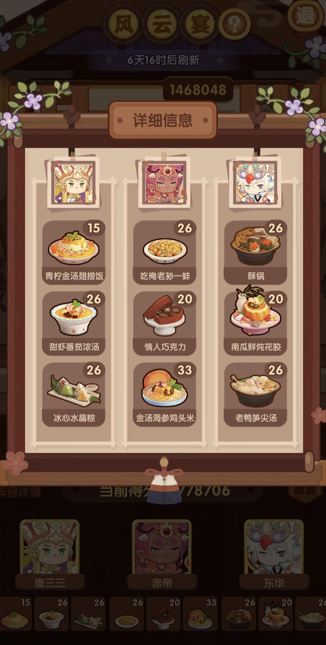 规则同23.10.13省宴348w仅供参考,有遗玉,乐乐、藻白、句茫都有一个席丰,思路或可借鉴,乐乐妹可以换公明之类的做烤切老干妈