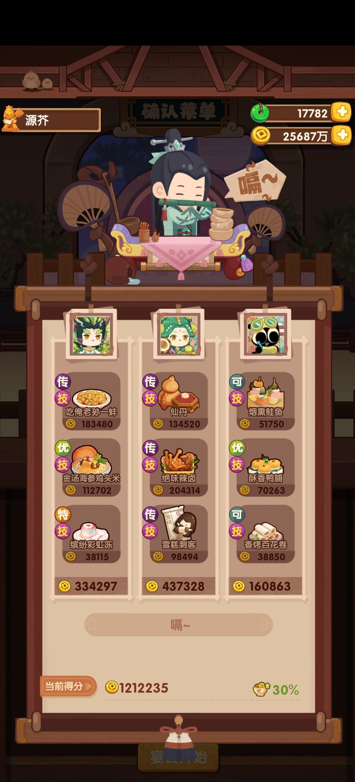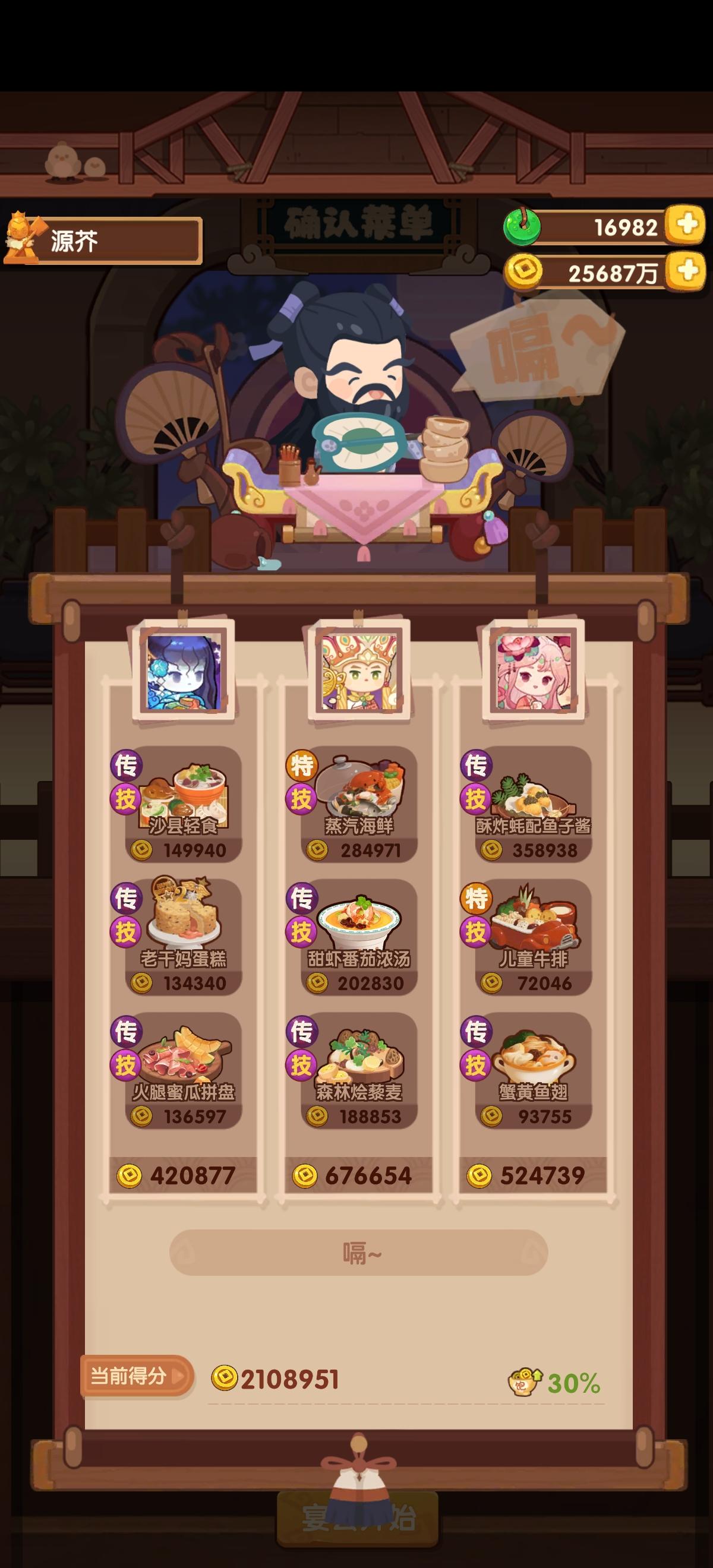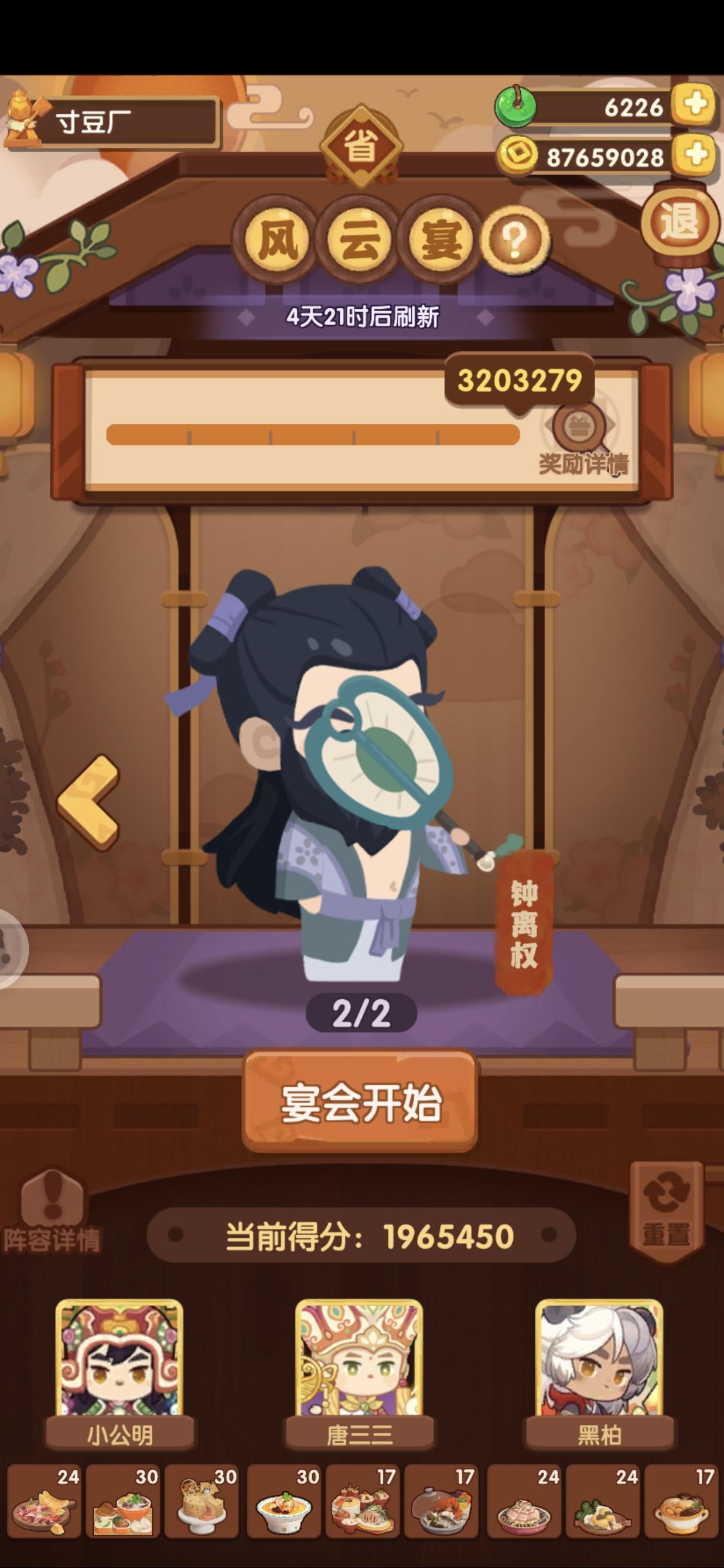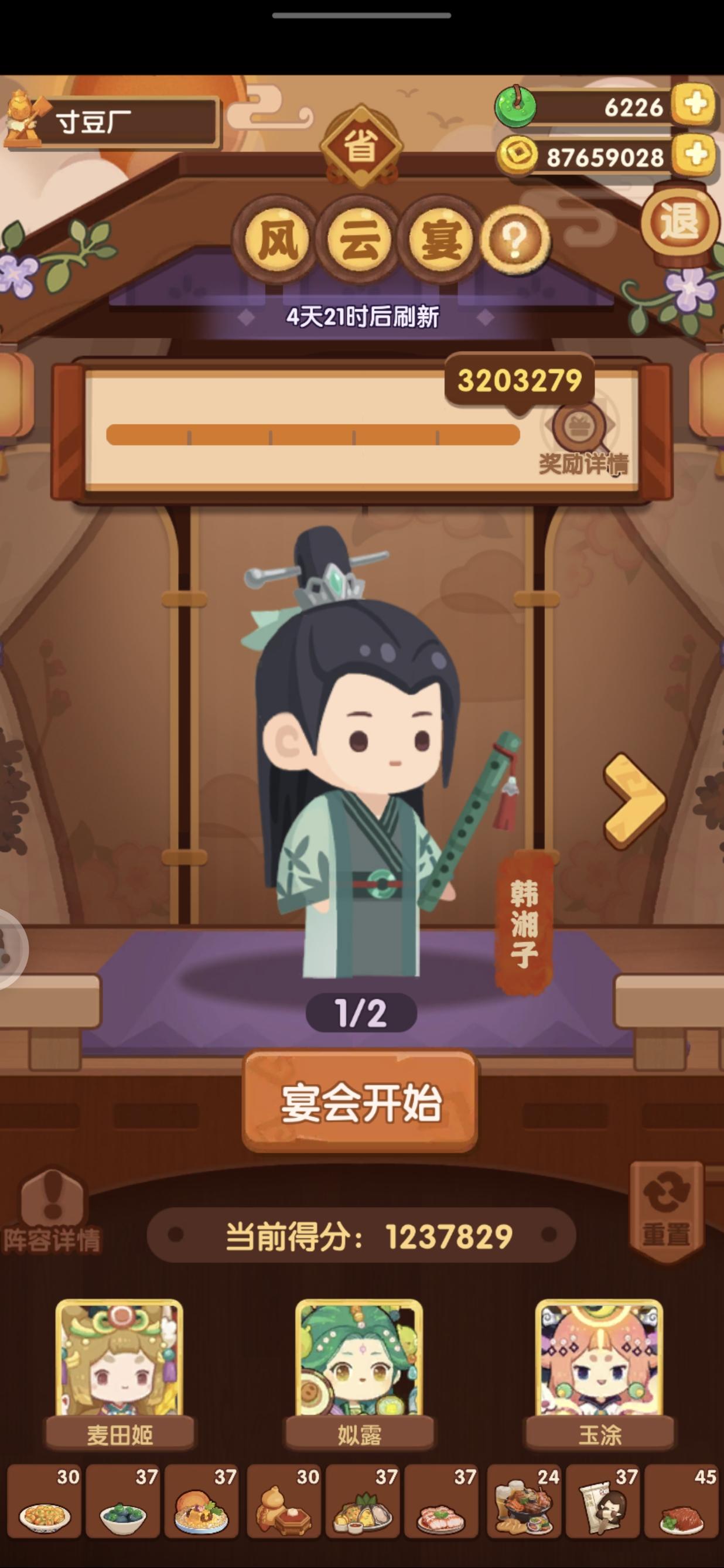 新手厨具宴会➢韩湘子、钟离权➢317万