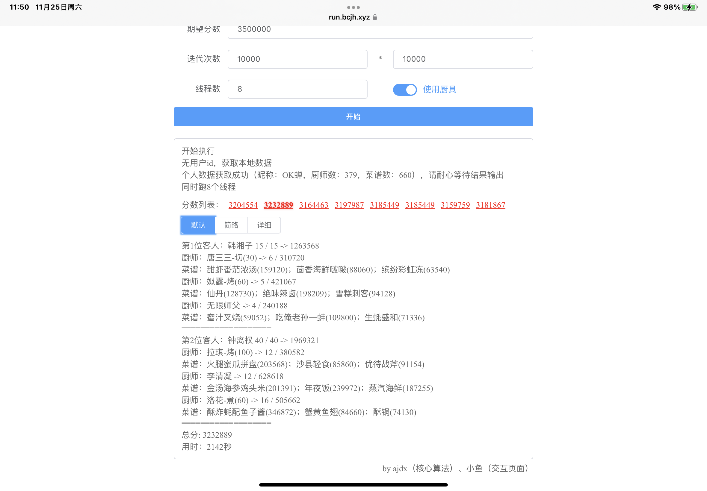 本次宴会小难晚些时候会优化作业图3.4为有后厨菜作业(BBQ烧烤和蒸汽海鲜),无后厨子作业,暂时做不出更高分优化了