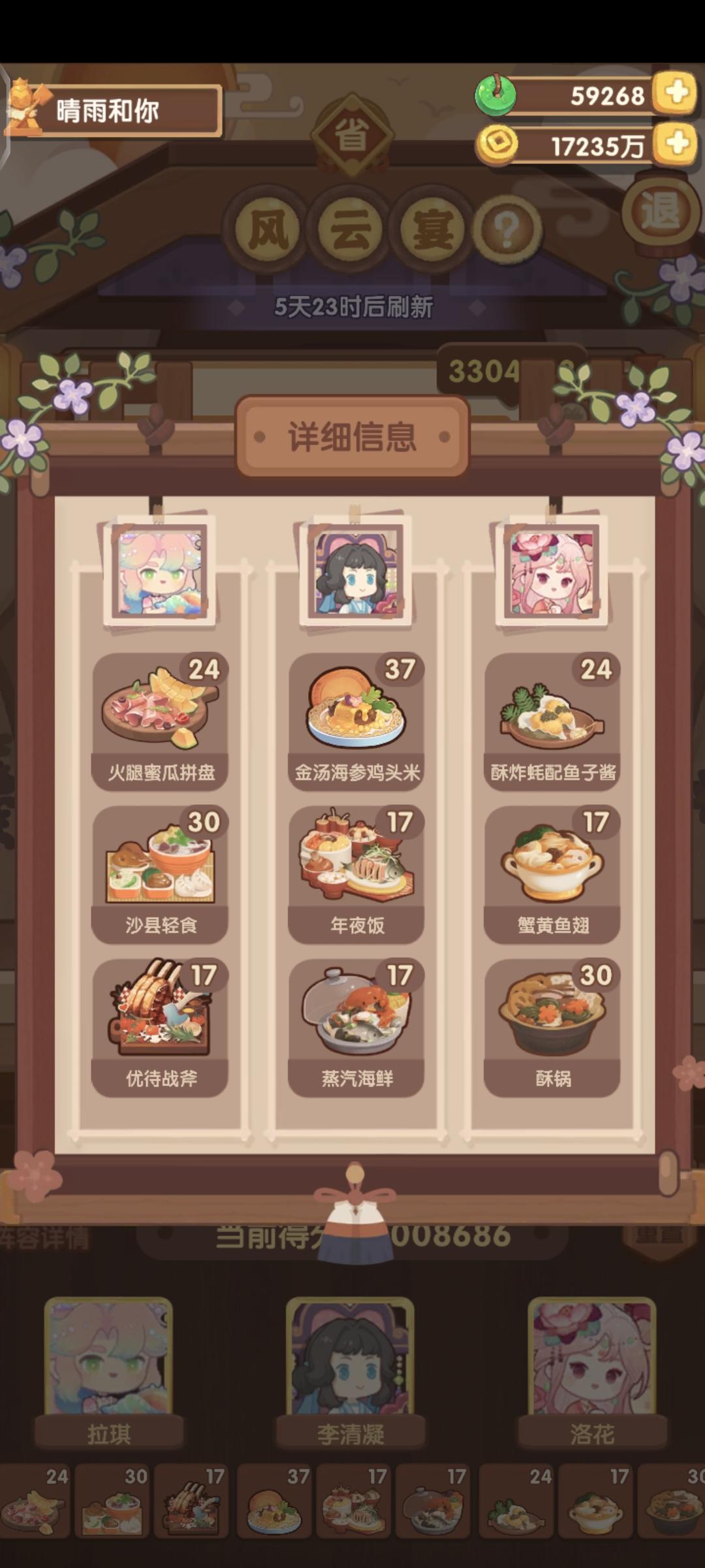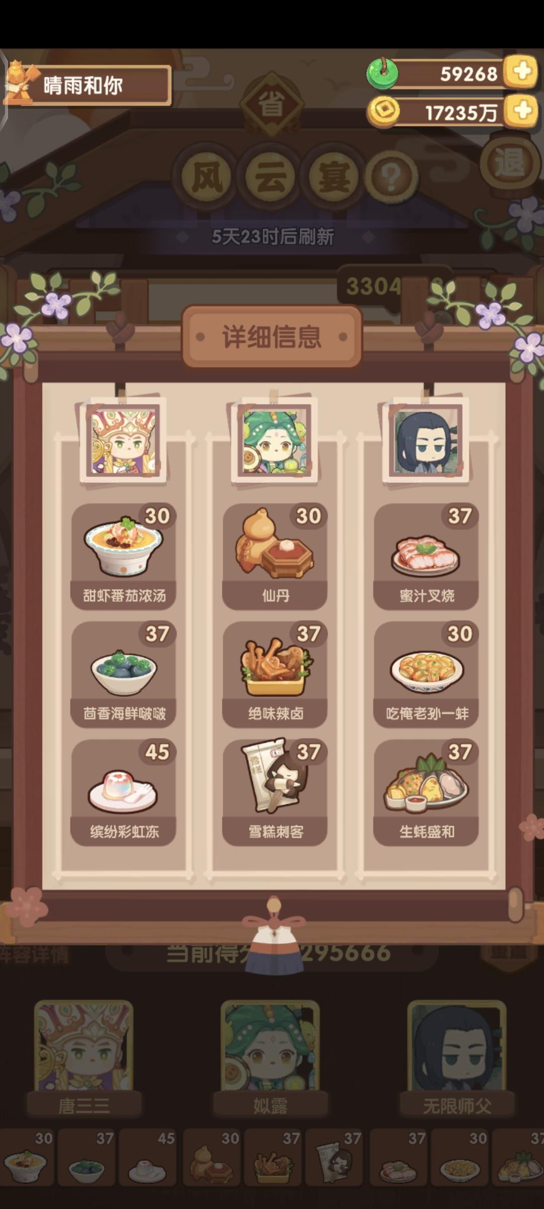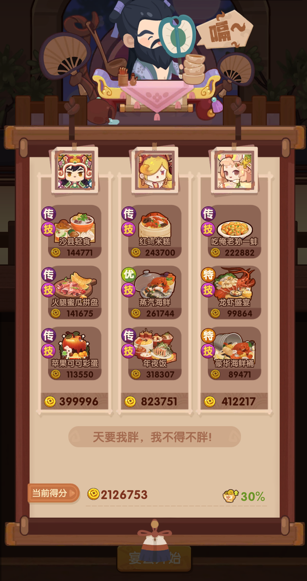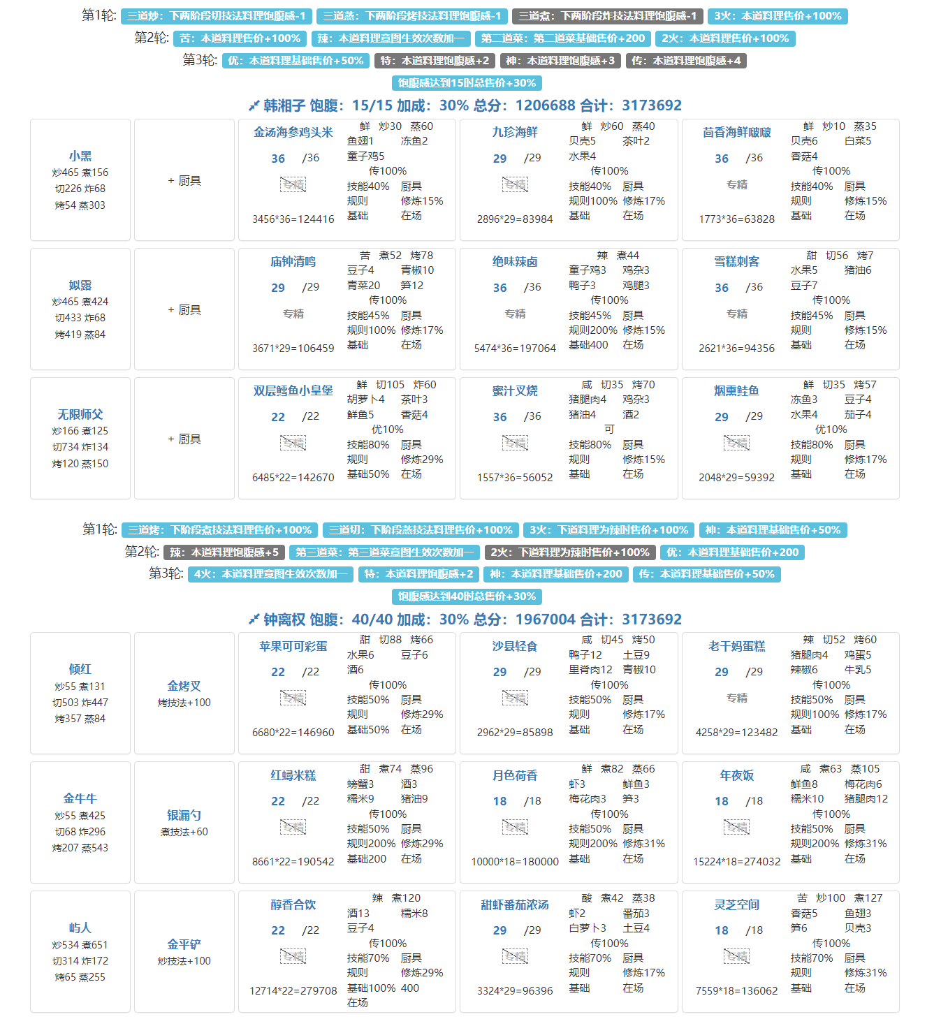 【风云宴】省级5档贫民无蒸汽全二火厨具这次真得蛮难的 我参考了好几个作业终于两个小号都过了,图1有三文鱼拼盘 图2没有,供有缘人参考。